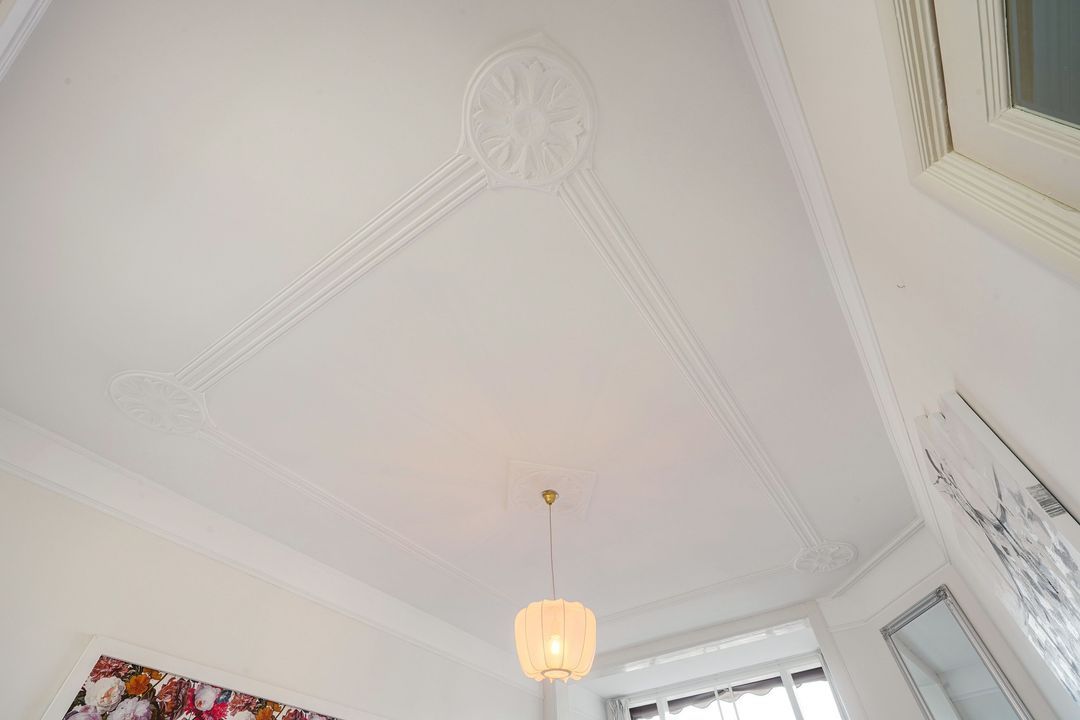 Wanden recent gestuct en geschilderd; karakteristieke details in goede staat
