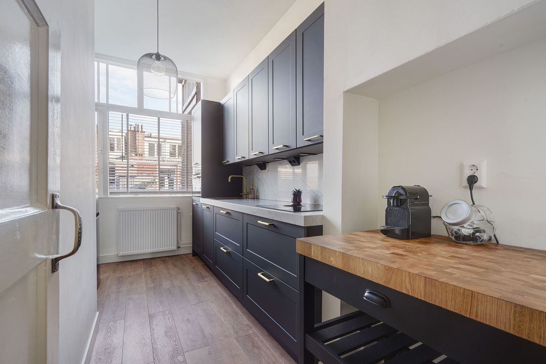 Character, comfort, and location rarely combine so convincingly as in this apartment on Valkenboskade. Situated on one of The Hague's most beautiful quays, this spacious 4-room apartment (approx. 107 m²) offers panoramic views and high-quality finishes. It features a bright living/dining room overlooking the quay, two spacious bedrooms, a modern integrated kitchen, a spacious modern bathroom, and two balconies at the rear. The 3.10-meter ceiling height enhances the feeling of spaciousness.