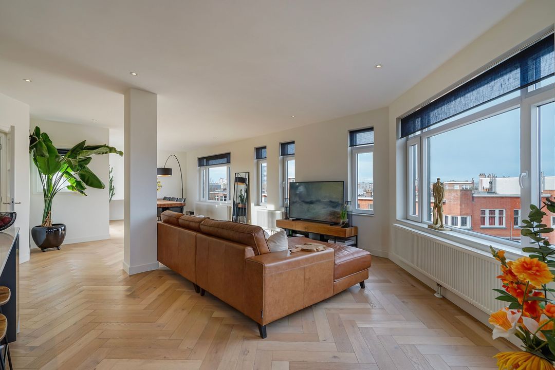 Zeer bijzonder royaal hoek dubbel bovenhuis (ca. 170 m²) voorzien van een grote living met luxe woonkeuken en dakterras op het zuiden (dakopbouw op de 3e verdieping gerealiseerd in 2019), 3 ruime slaapkamers en 2 kleinere slaap/werkkamers en 2 badkamers.
