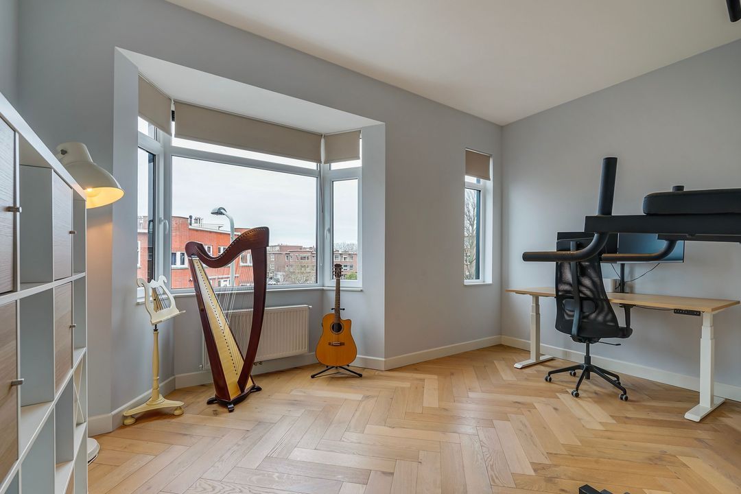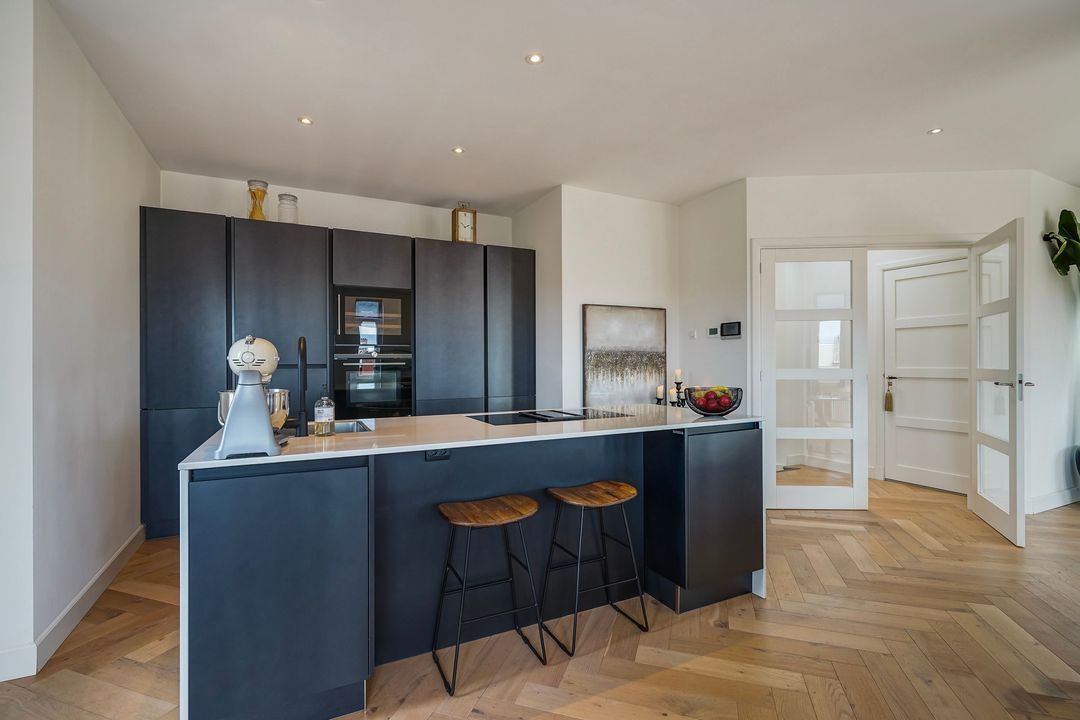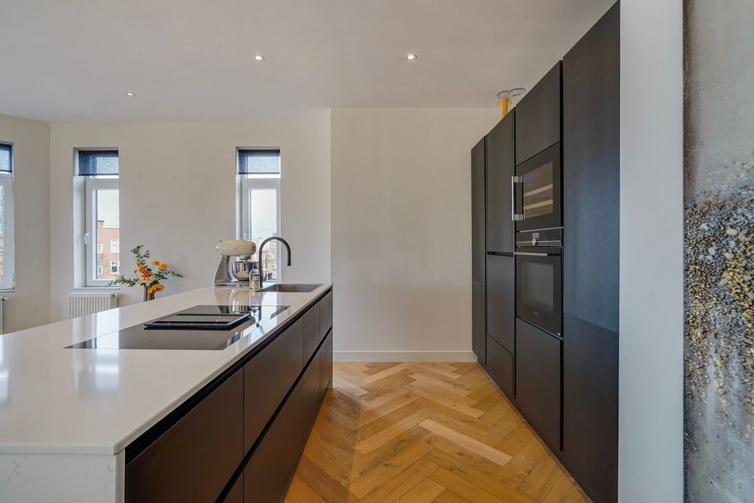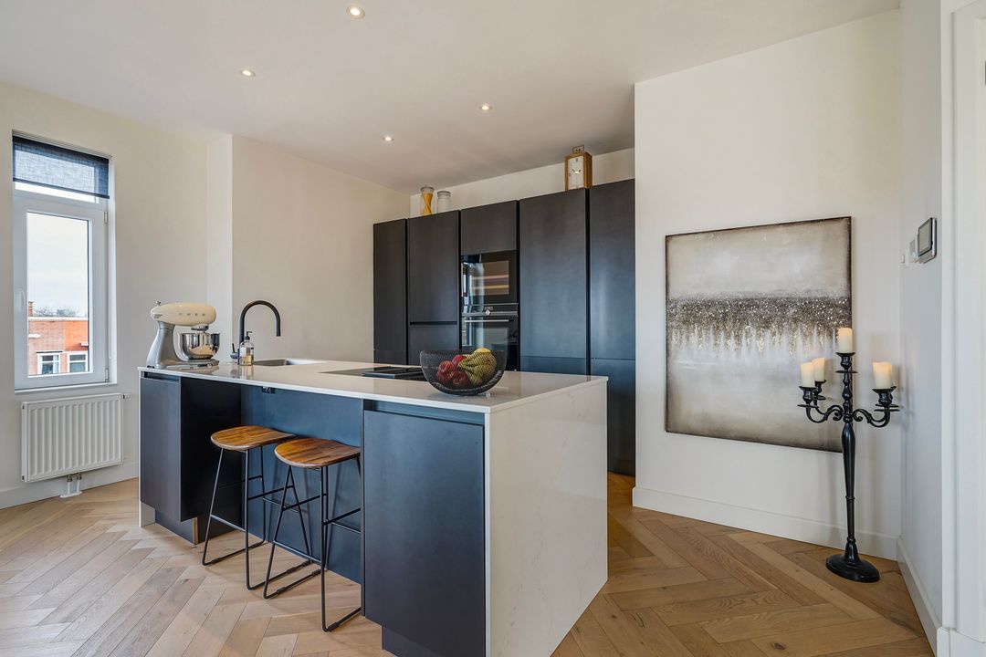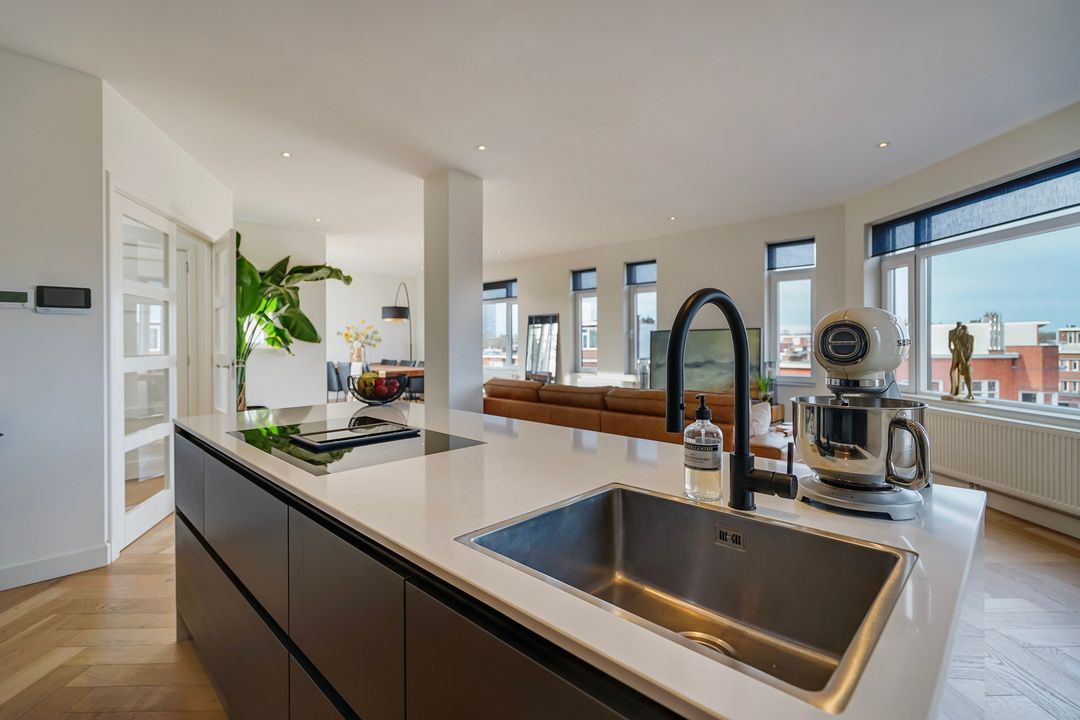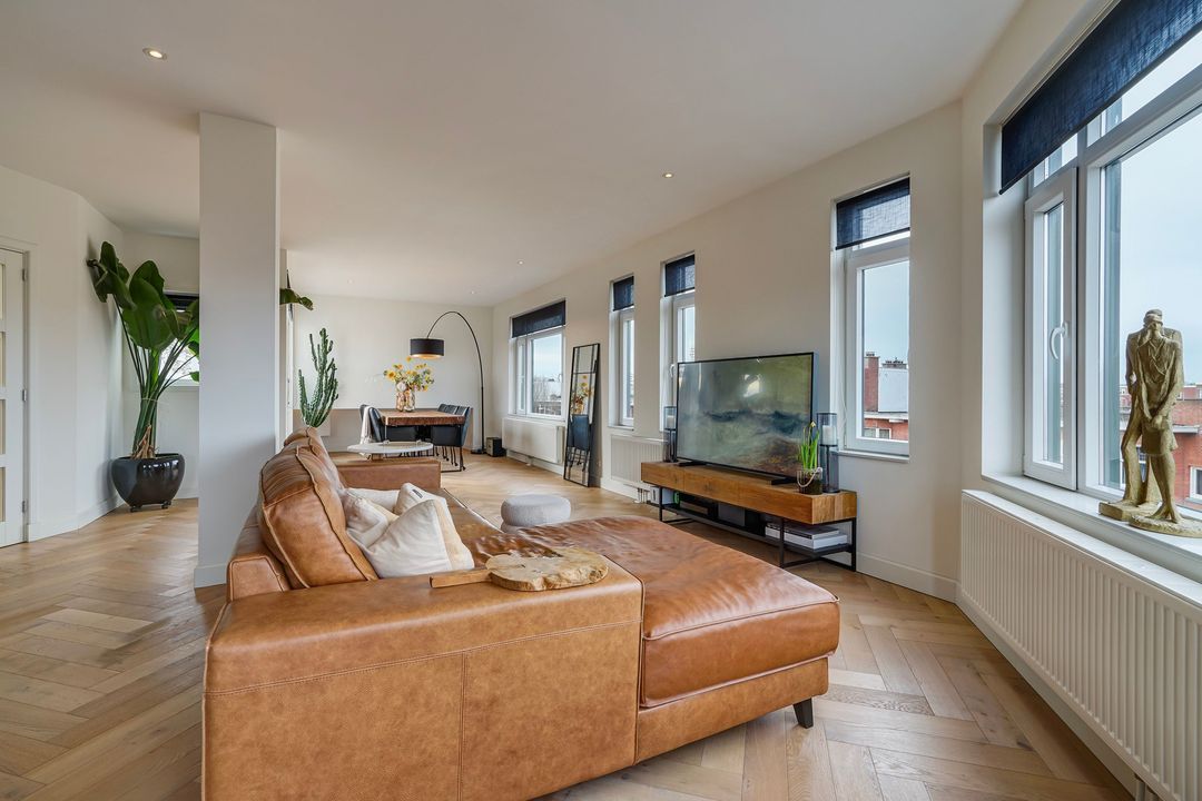 Zeer bijzonder royaal hoek dubbel bovenhuis (ca. 170 m²) voorzien van een grote living met luxe woonkeuken en dakterras op het zuiden (dakopbouw op de 3e verdieping gerealiseerd in 2019), 3 ruime slaapkamers en 2 kleinere slaap/werkkamers en 2 badkamers.