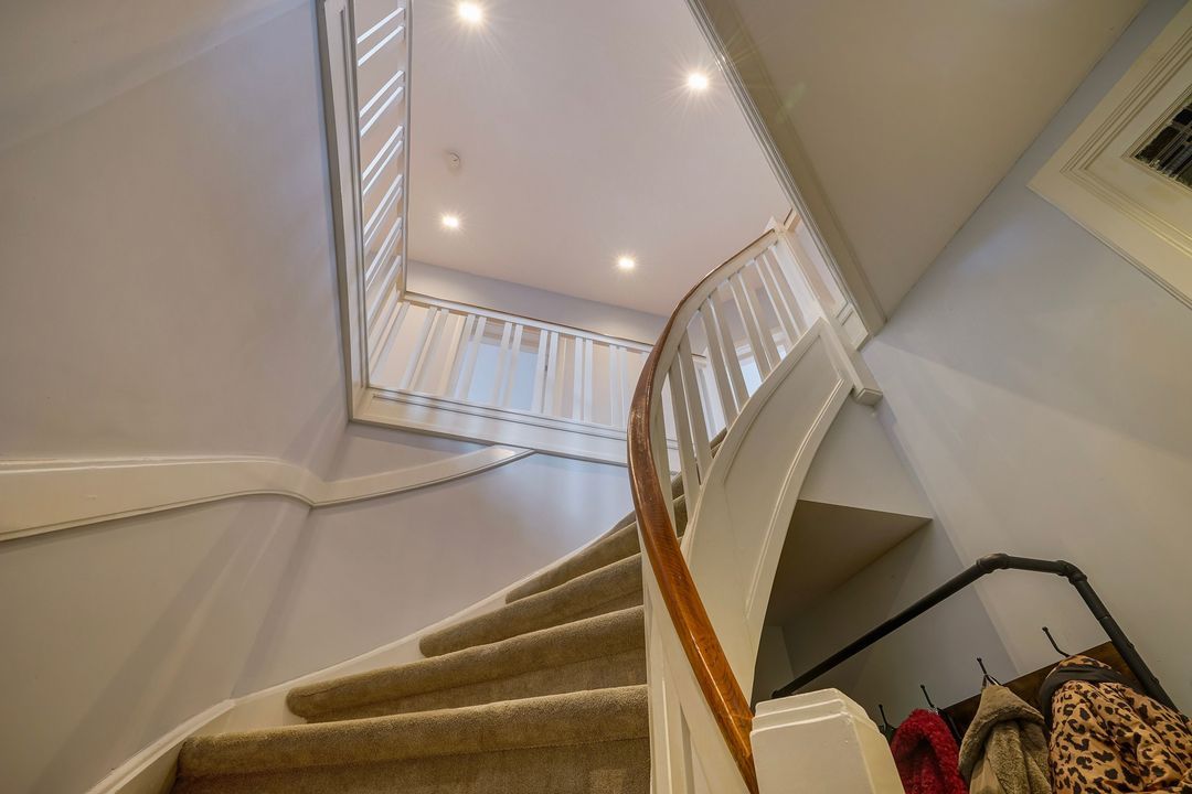A total of five rooms are located on the second floor: a spacious front bedroom on the corner with access to the laundry room and a modern, beautifully tiled bathroom with a large walk-in shower, double vanity with a mirrored cabinet and a design radiator. A second bright and spacious front bedroom features a bay window.