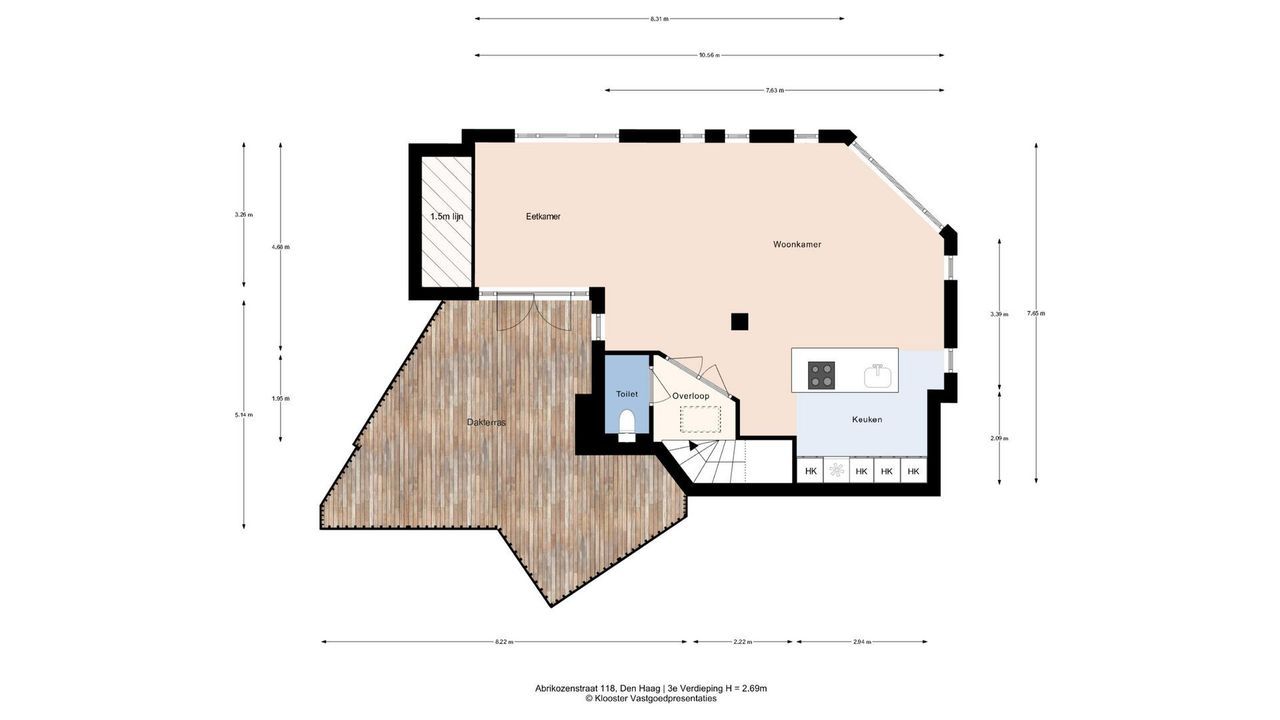 De inhoud van het appartement is ca. 600 m³.