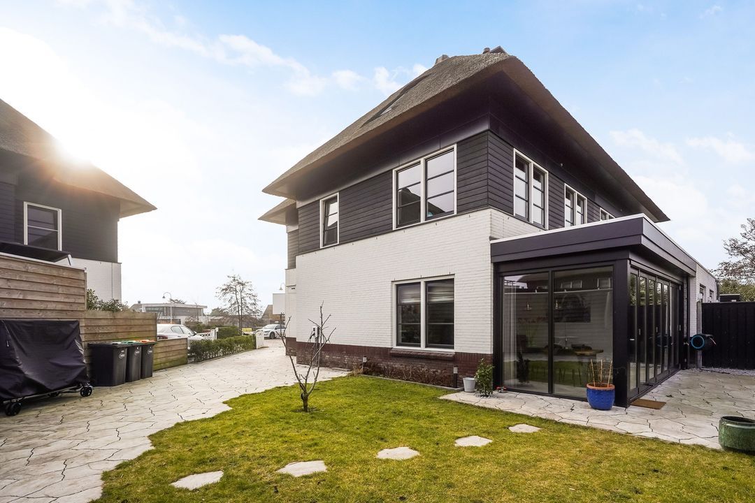 Werkelijk schitterende rietgedekte en luxueus afgewerkte 2-onder-1 kapwoning (ca. 186 m²) voorzien van ruime en uitgebouwde woon/eetkamer met woonkeuken aan de voorzijde, 3 slaapkamers en ruime badkamer op de 1e verdieping, riante 2e (kap)verdieping (mogelijkheid tot creëren van 2 slaapkamers en een 2e badkamer) en een vliering.