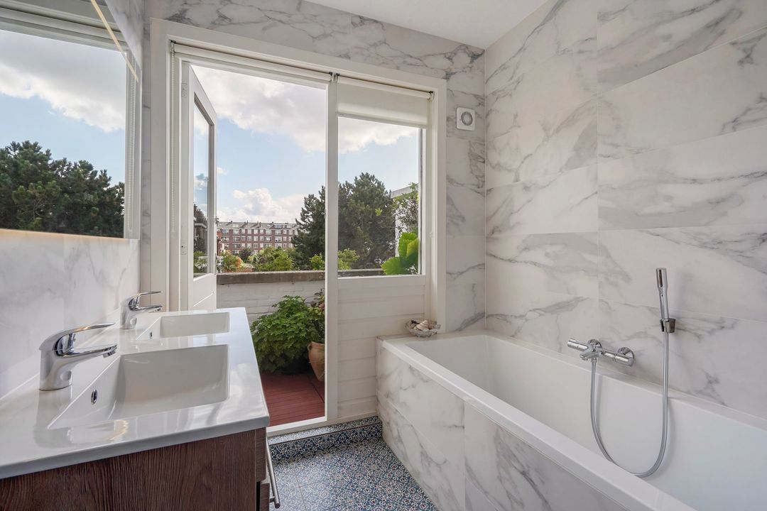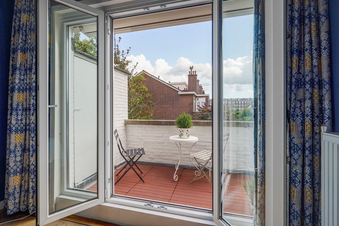 The apartment has in front synthetic window frames with double glazing and at the back wooden and synthetic window frames with HR++ glazing.