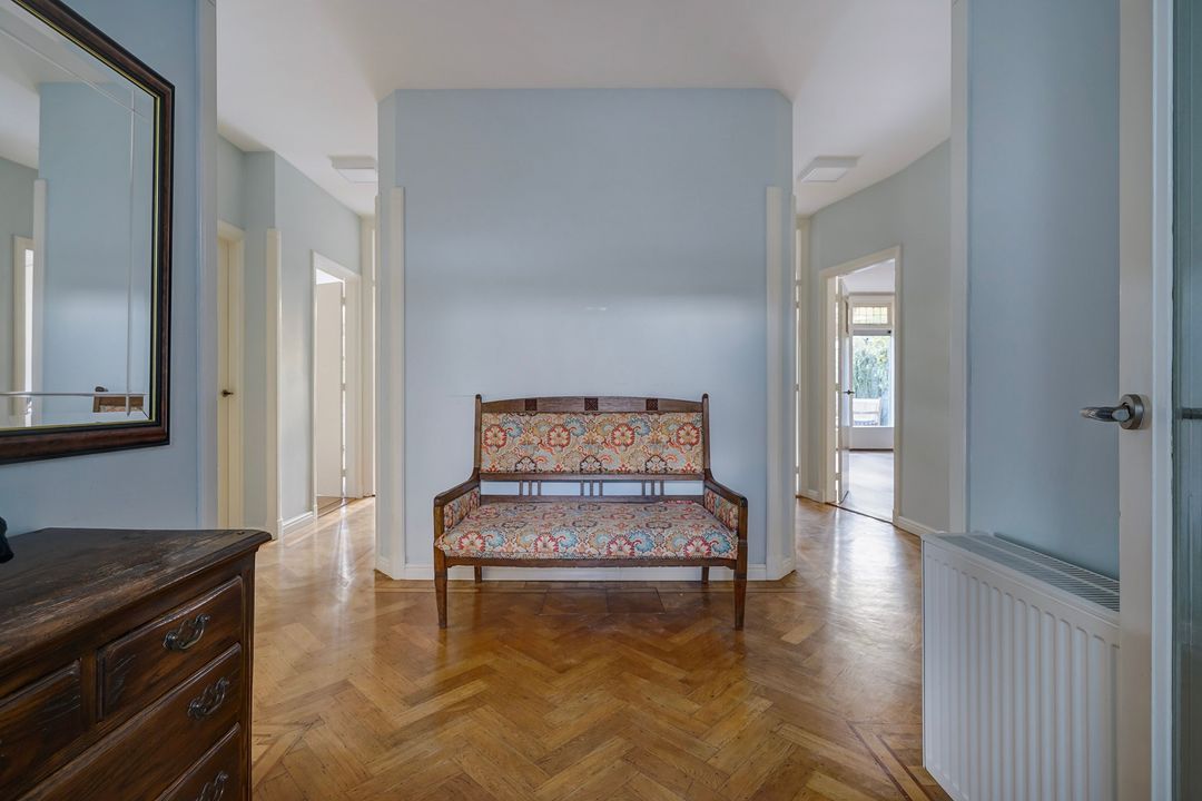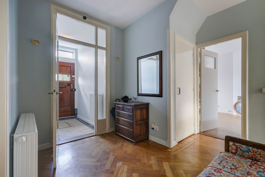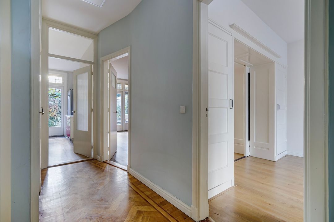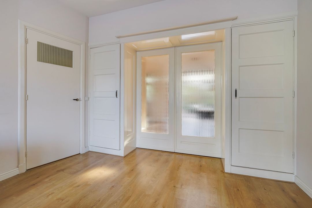 Entree, ruime vestibule met granieten vloer en tochtseparatie, riante hal met visgraat parketvloer, 2 trapkasten, modern toilet met fontein, verdiepte inloopkast, ruime kamer ensuite met schuifseparatie en 4 vaste kasten, marmeren schouw met gas open haard en in open verbinding met de keuken voorzien van diverse inbouwapparatuur zoals inductie kookplaat, vaatwasser, afzuigkap en losstaande RVS koel-/vrieskast.