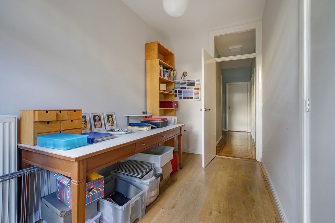 The apartment has in front aluminum window frames with double glazing and at the back wooden window frames with double glazing.