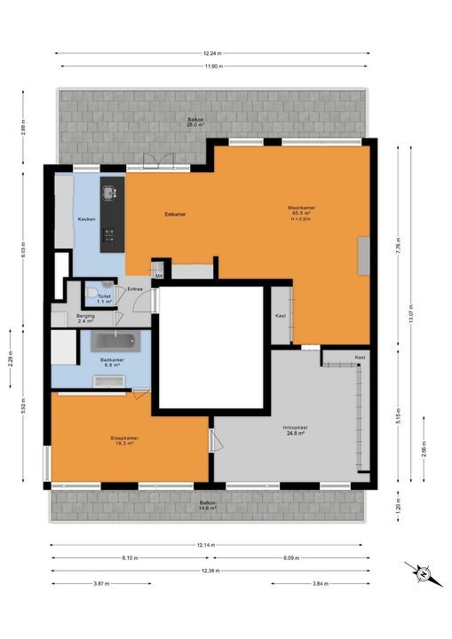 De inhoud van het appartement is ca. 380 m³.
