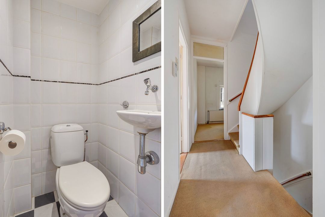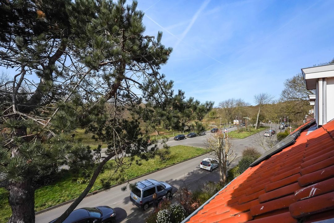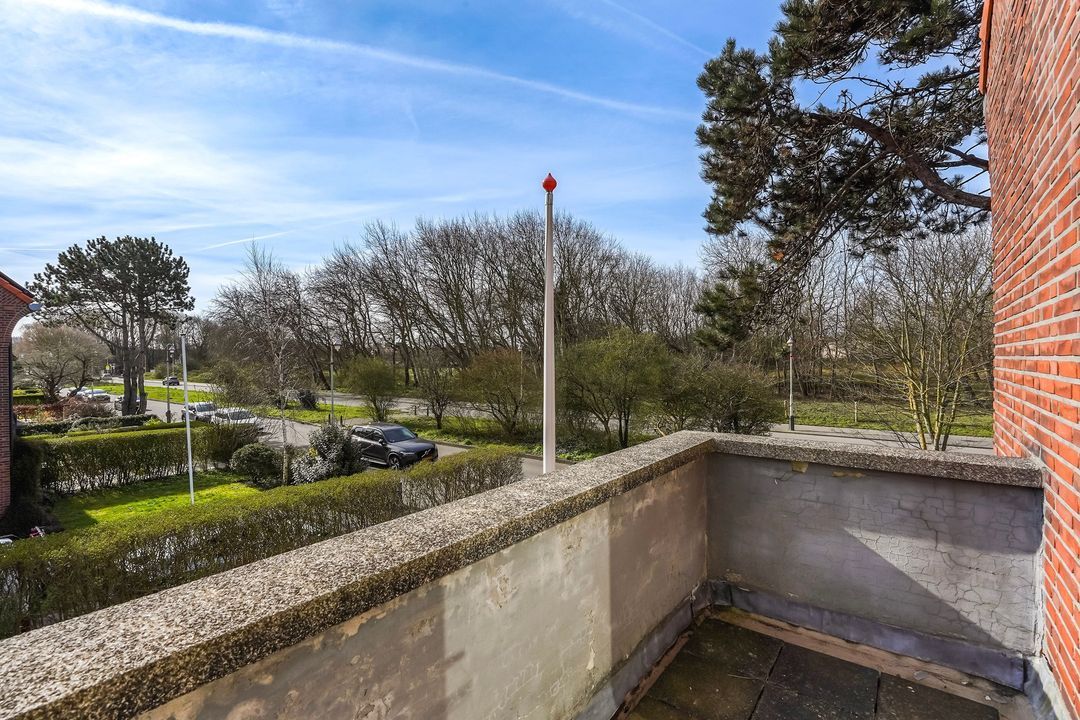 Overloop, toilet met duoblok en fontein, achterslaapkamer voorzien van kastenwand annex ruim balkon en zwart/wit betegelde badkamer voorzien van inloop (stort)douche en badkamermeubel, voorzijkamer, voorslaapkamer annex balkon en vrij uitzicht op de duinen.
