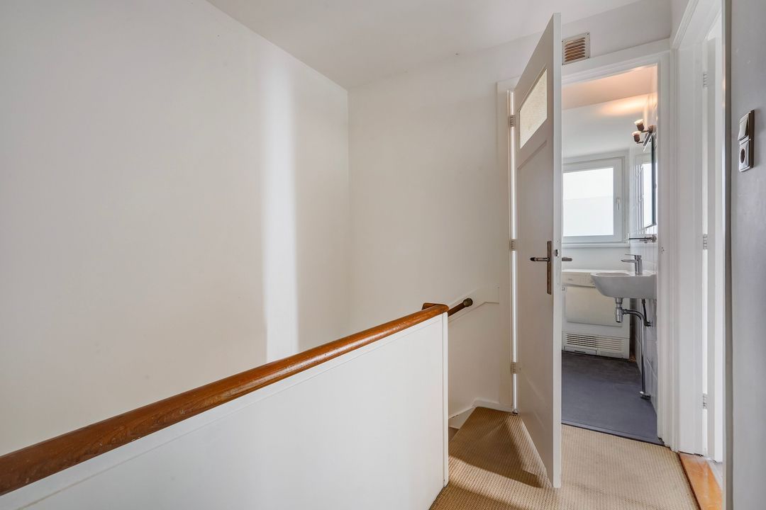 Overloop met toegang naar een ruime vliering, bergruimte onder het voordakschild, doorgebroken zolderkamer (voorheen 2 slaapkamers) met dakkapellen, 2e badkamer met douche, wastafel en wasmachine/droger opstelling.