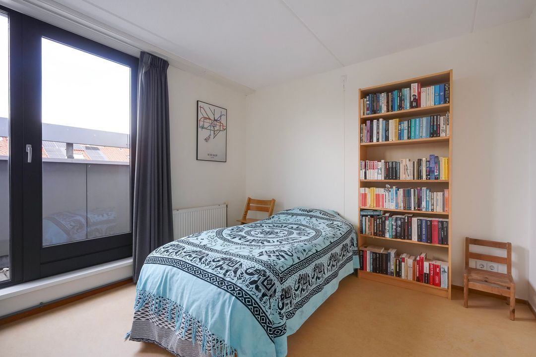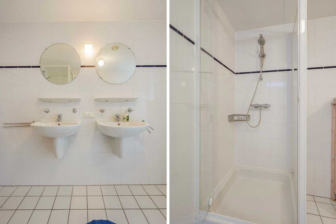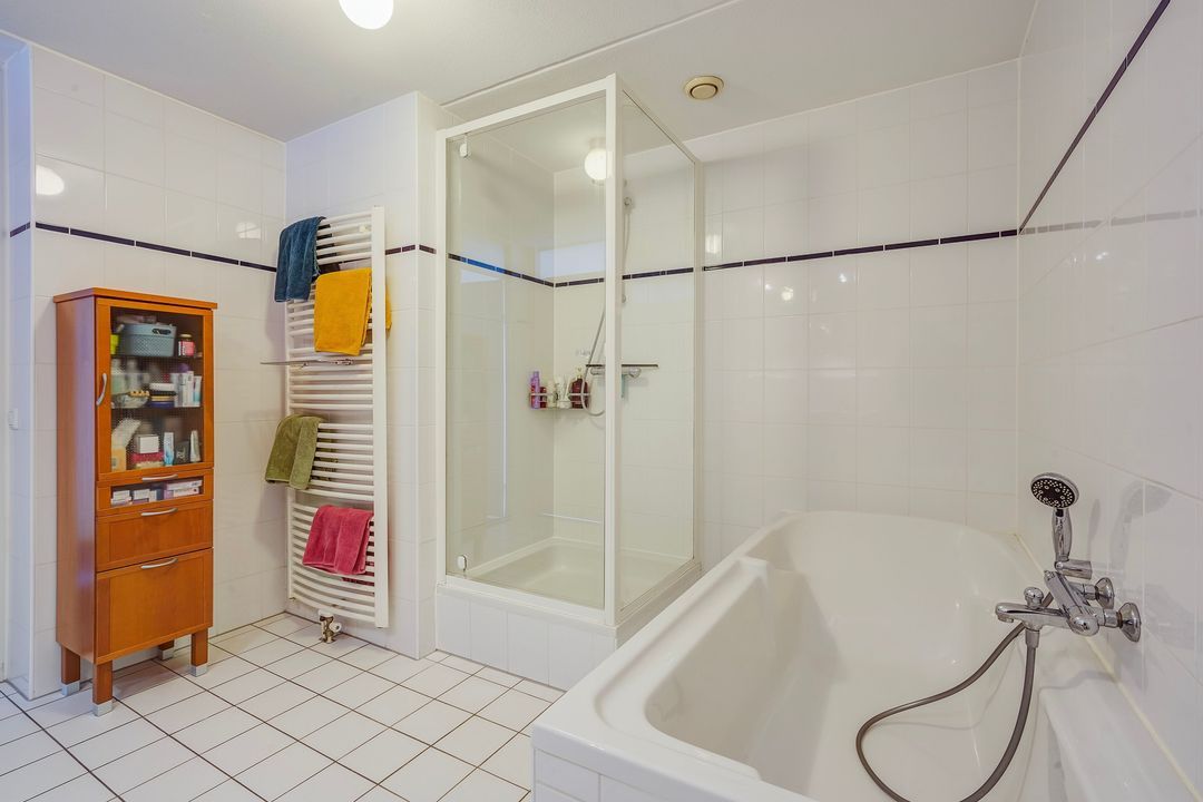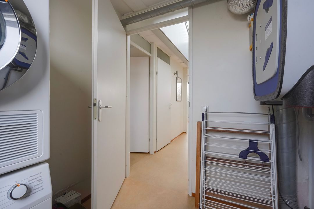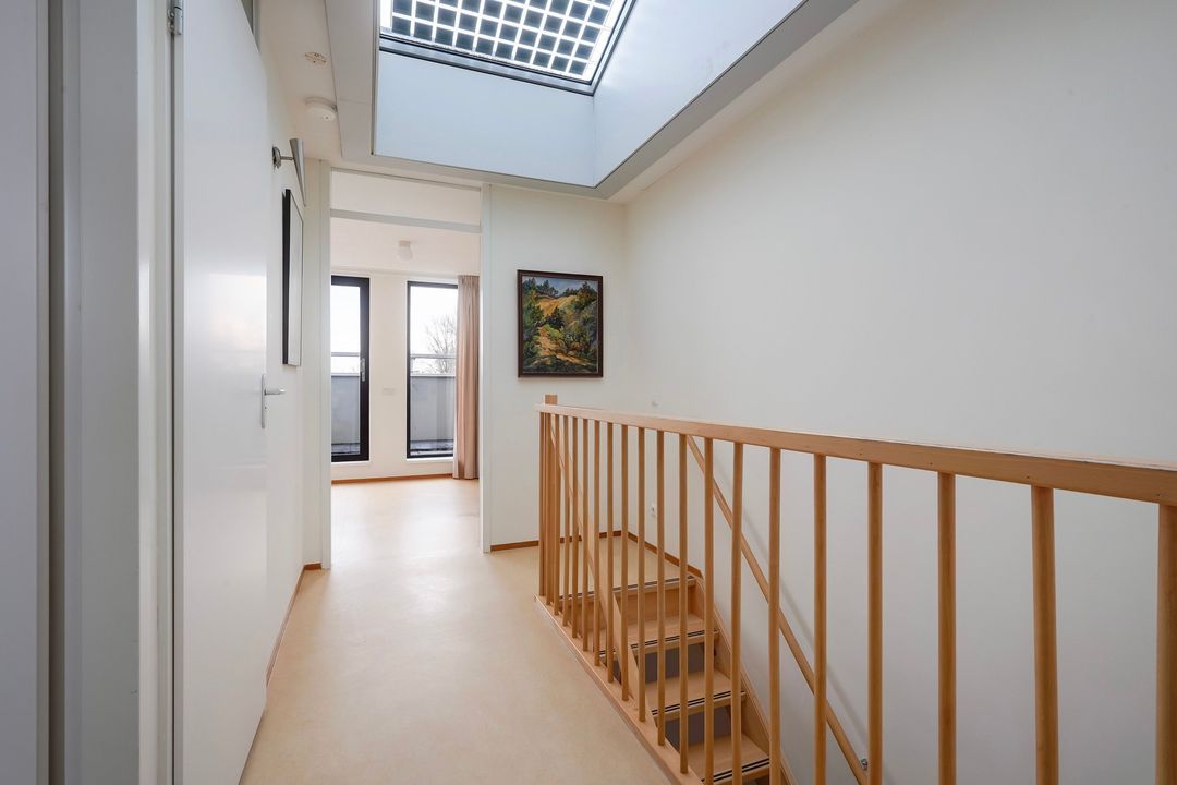 Overloop met dakraam, tweede ruime badkamer met douchecabine, 2 wastafels, toilet en handdoeken-radiator. Achterslaapkamer met nieuwe schuifpui voorzien van zonwering naar zonnig balkon op het zuidoosten. Voorslaapkamer met deur naar balkon op het noordwesten. Wasruimte met aansluiting voor de wasmachine en droger, opstelplaats van cv-ketel met een hybride warmtepomp, omvormer zonnepanelen en unit WTW installatie.