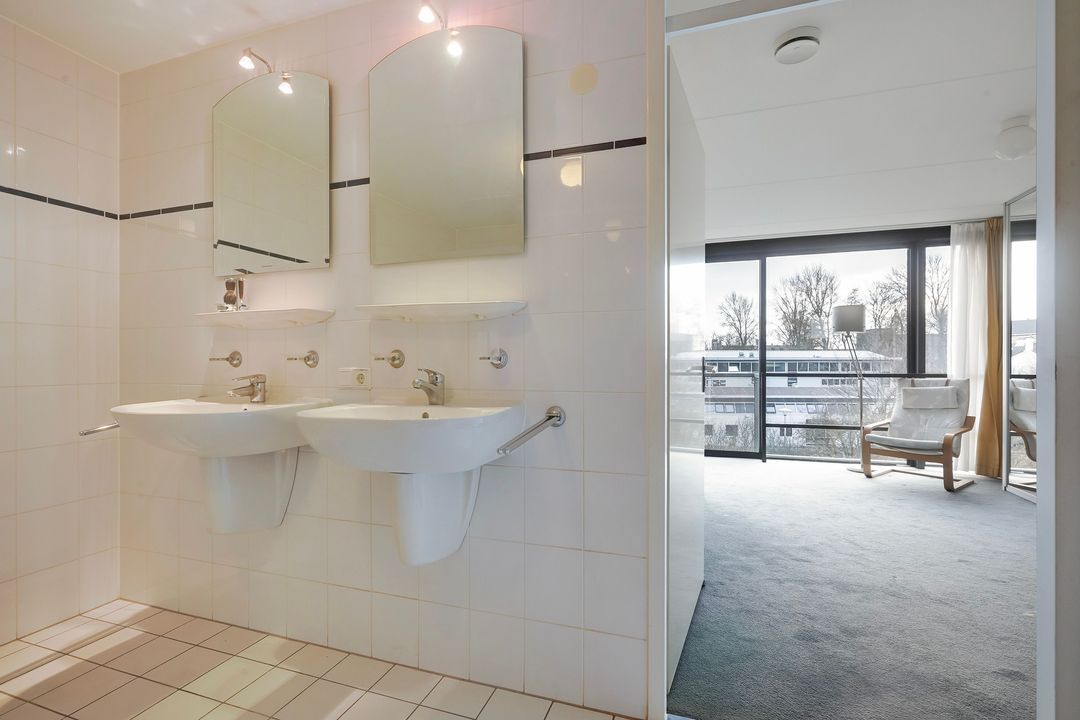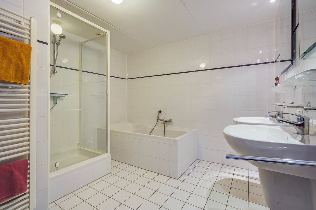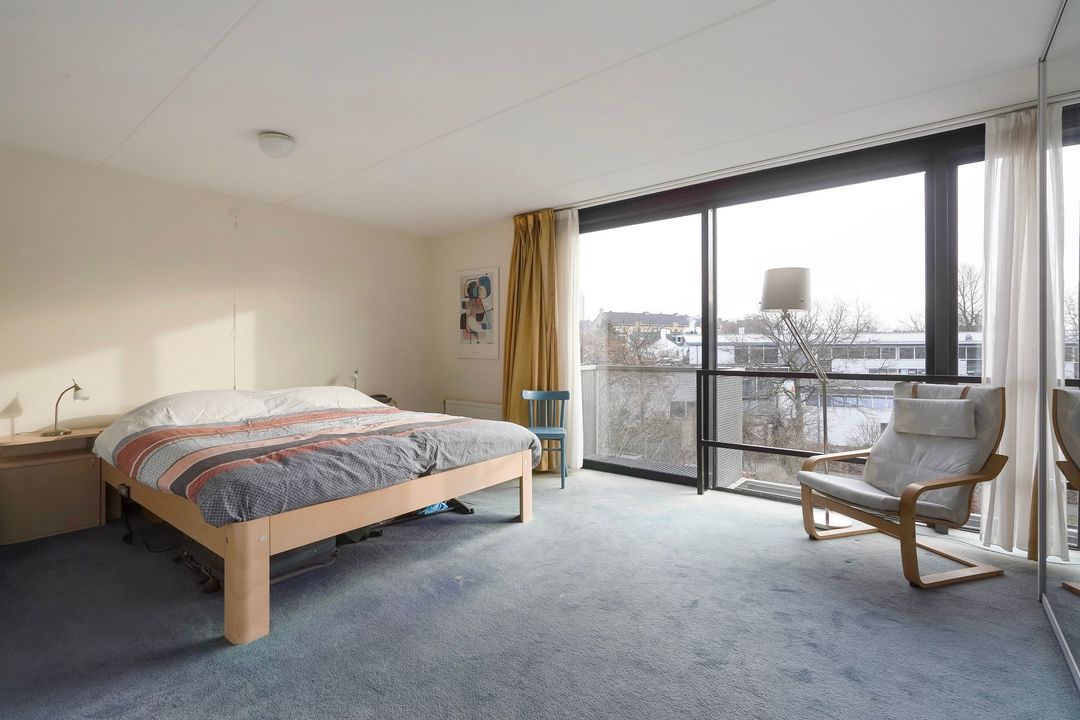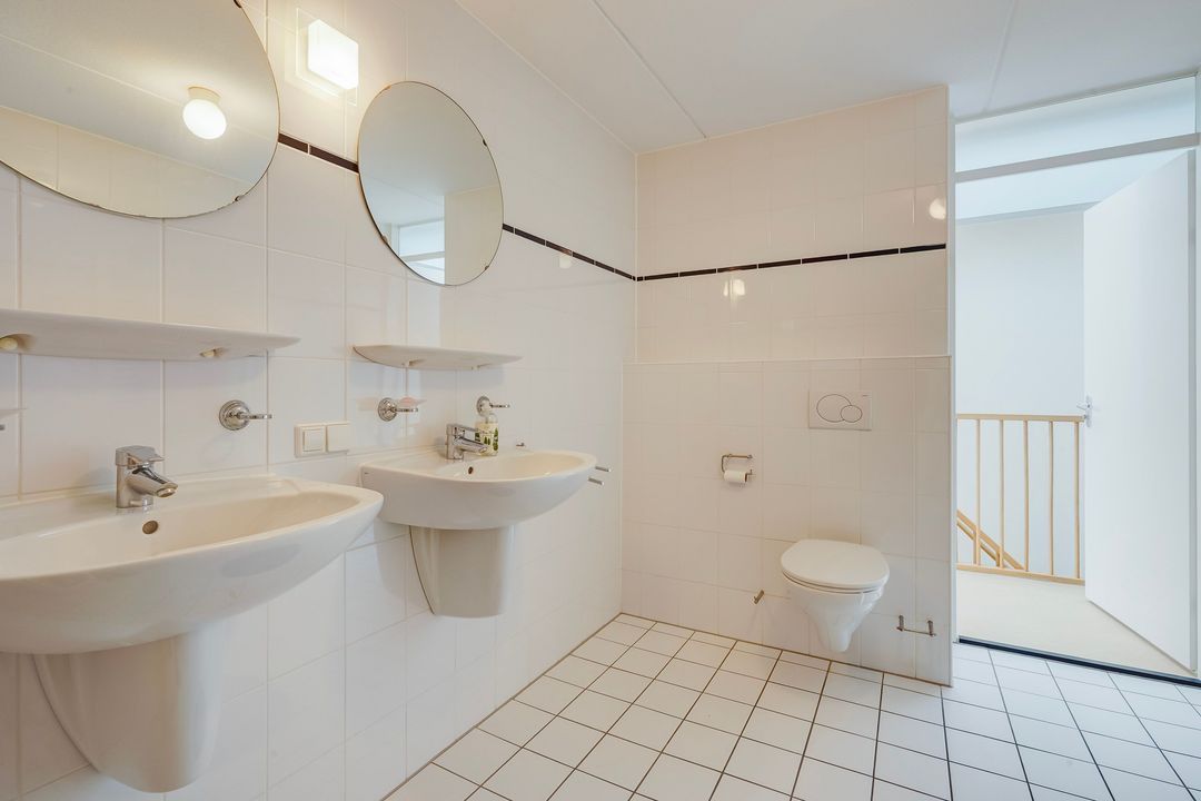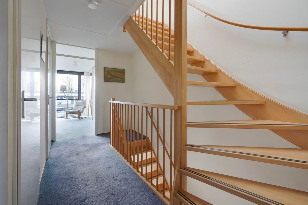 Overloop met dakraam, tweede ruime badkamer met douchecabine, 2 wastafels, toilet en handdoeken-radiator. Achterslaapkamer met nieuwe schuifpui voorzien van zonwering naar zonnig balkon op het zuidoosten. Voorslaapkamer met deur naar balkon op het noordwesten. Wasruimte met aansluiting voor de wasmachine en droger, opstelplaats van cv-ketel met een hybride warmtepomp, omvormer zonnepanelen en unit WTW installatie.