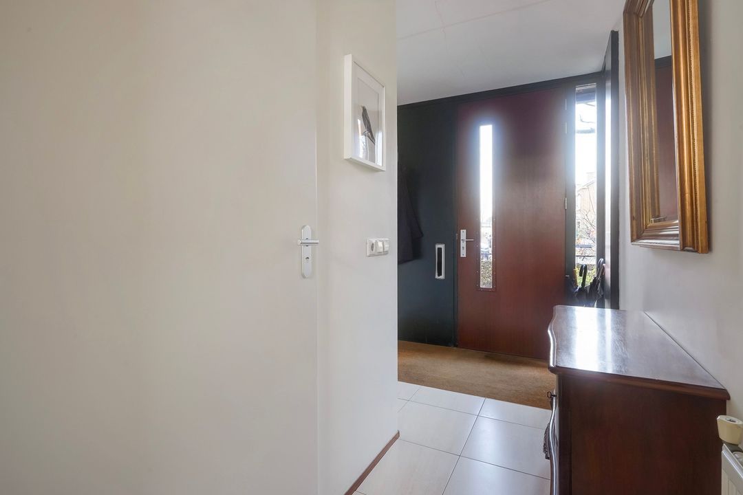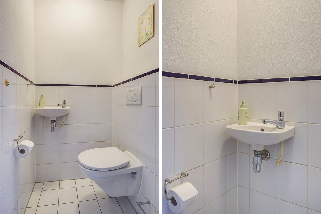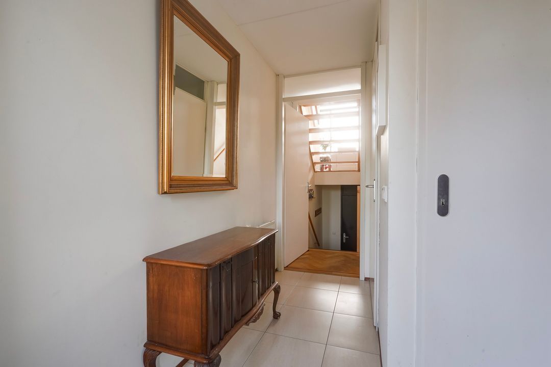 Via de voortuin naar entree van de woning, hal met meterkast, separaat toilet en fontein en voorzien van een tochtdeur. Via trap naar beneden alwaar zich een studie/hobbykamer bevindt voorzien van dubbele deuren naar de voortuin.