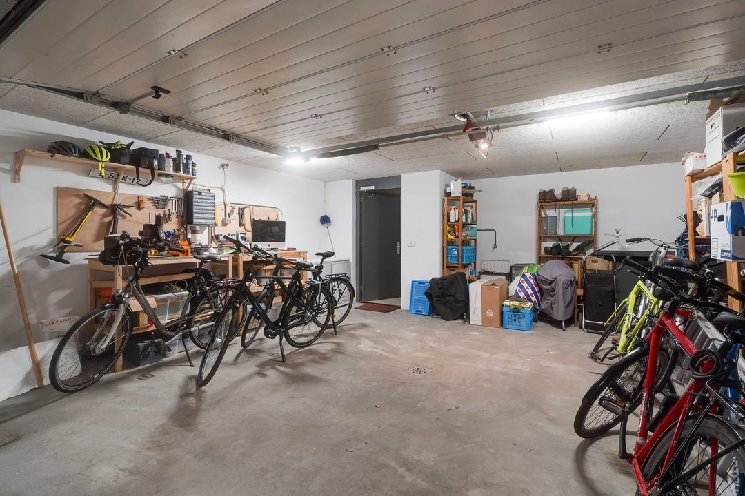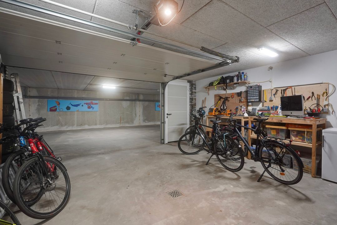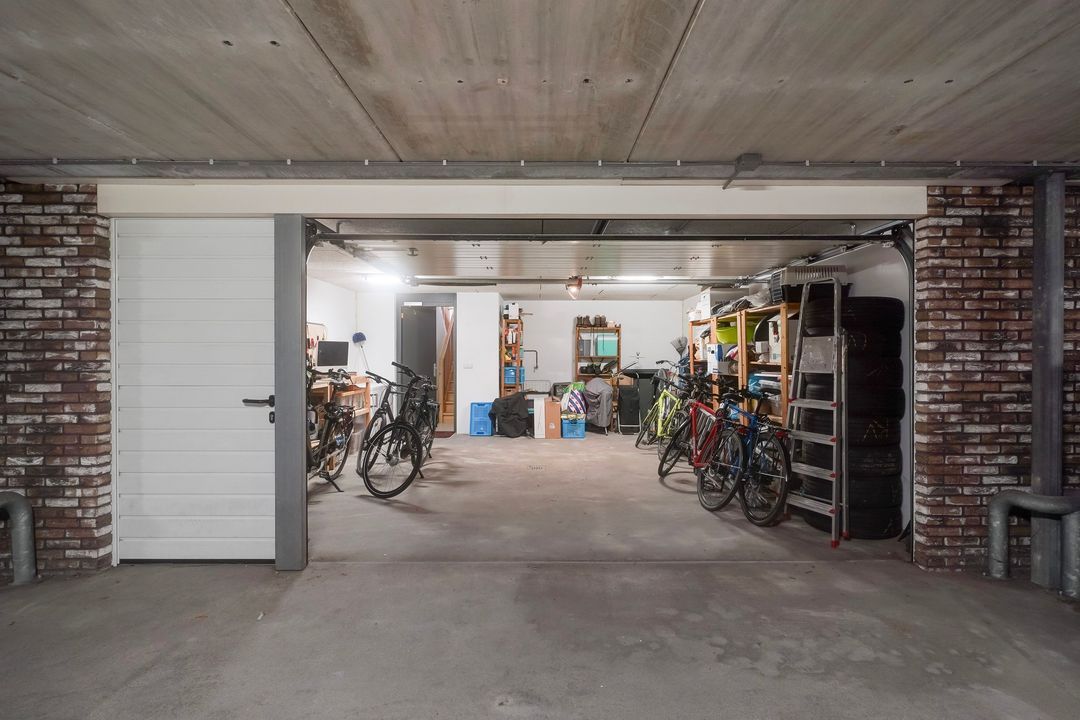 Onder de woning is een ruime garage, die vanuit het huis bereikbaar is en voorzien is van een elektrische roldeur en loopdeur. Met auto en fiets te bereiken via de hellingbaan (met vloerverwarming) en rijbaan.