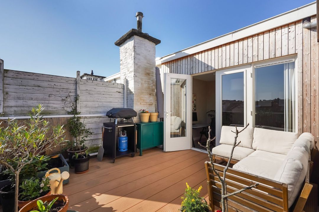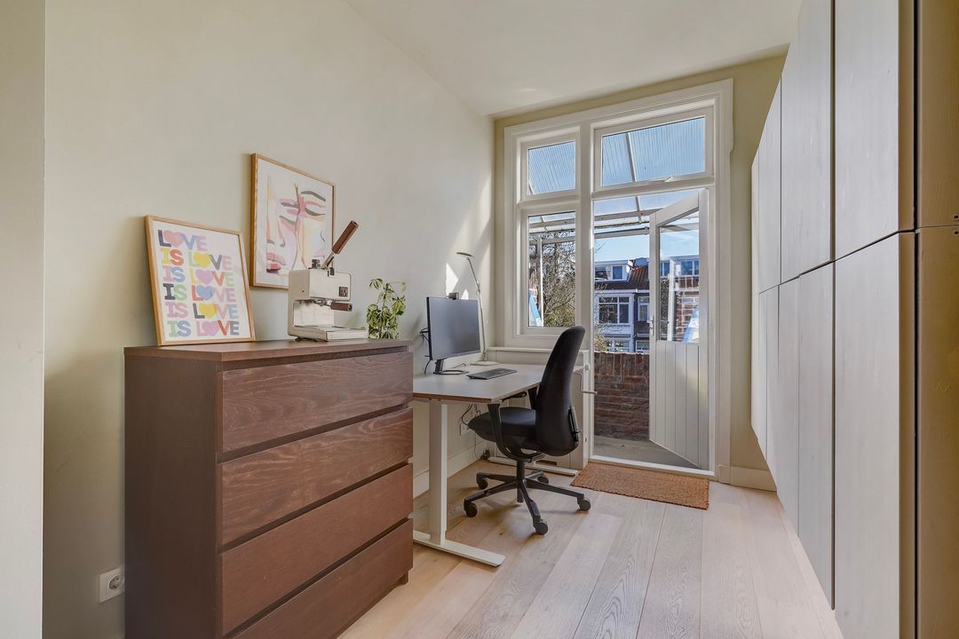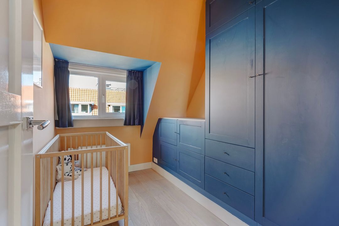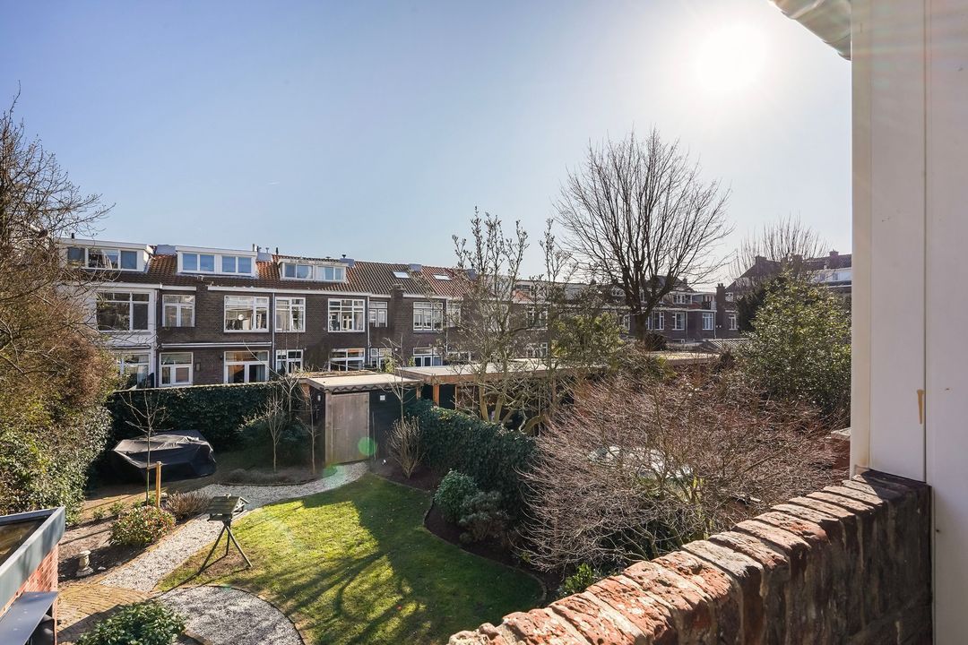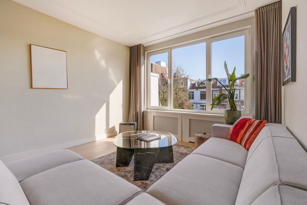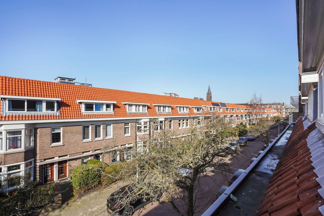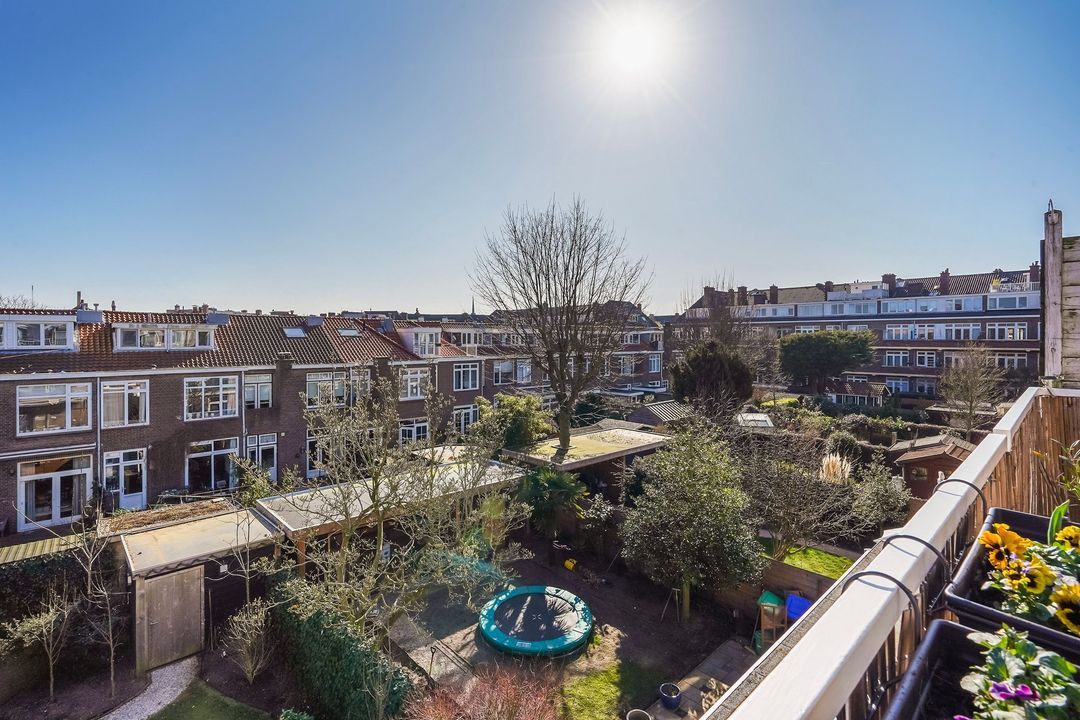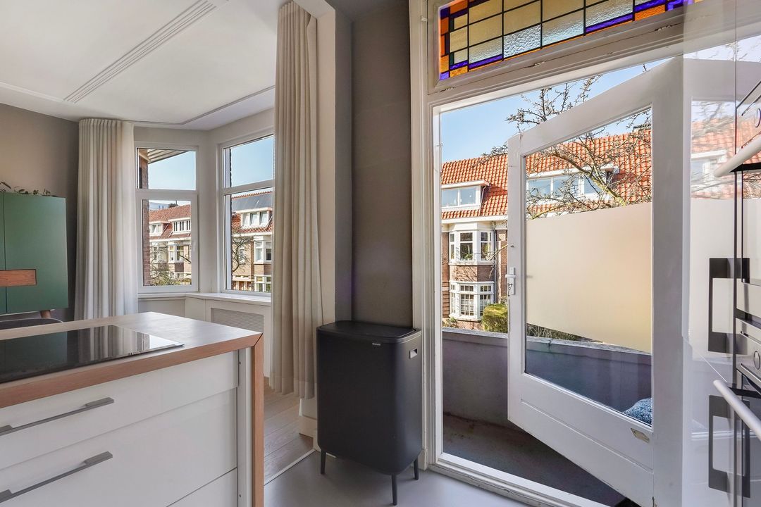 Situated in one of the most charming streets in the Vruchtenbuurt neighborhood, this beautifully modernized, spacious 6-room duplex apartment (approx. 111 m² living area) dates back to the 1930s and features a charming living/dining room with an open-plan kitchen, four bedrooms, a balcony, and a lovely sunny southeast-facing roof terrace.