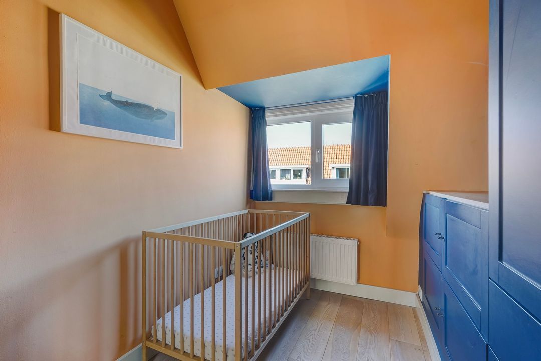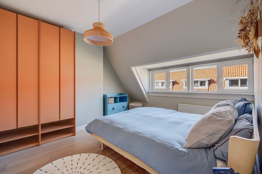 Ruime voorslaapkamer met groot dakkapel. Tweede voorslaapkamer met fraaie kastenwand.