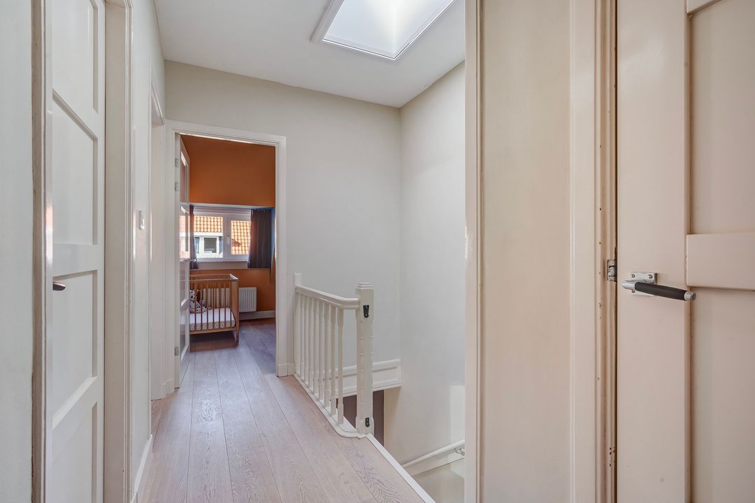 Gelegen in één van de gezelligste straten van de Vruchtenbuurt ligt dit prachtige gemoderniseerde jaren ’30 en ruim 6-kamer dubbel bovenhuis (woonoppervlakte ca. 111 m²) voorzien van een sfeervolle woon-/eetkamer met open keuken, 4 slaapkamers, balkon en een heerlijk zonnig dakterras op het zuidoosten.