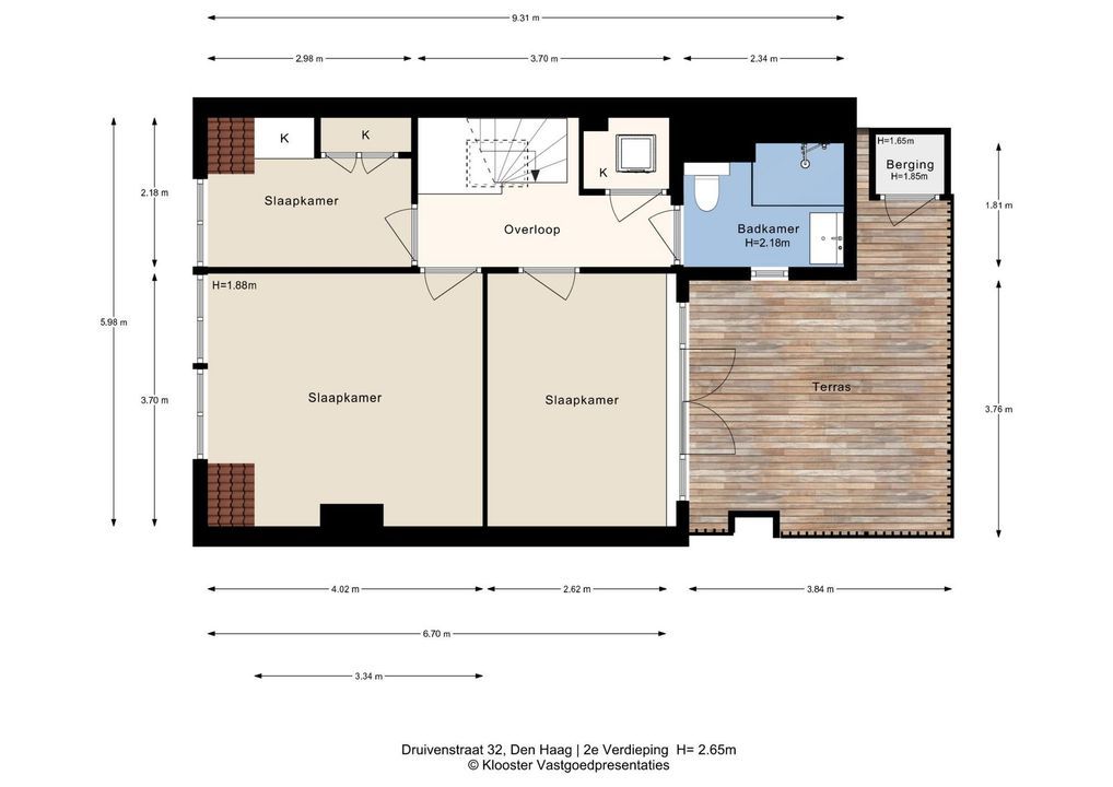 Lichte achterslaapkamer met dubbele deuren naar een heerlijk zonnig dakterras op het zuidoosten voorzien van composiet vloerdelen en bergkast.