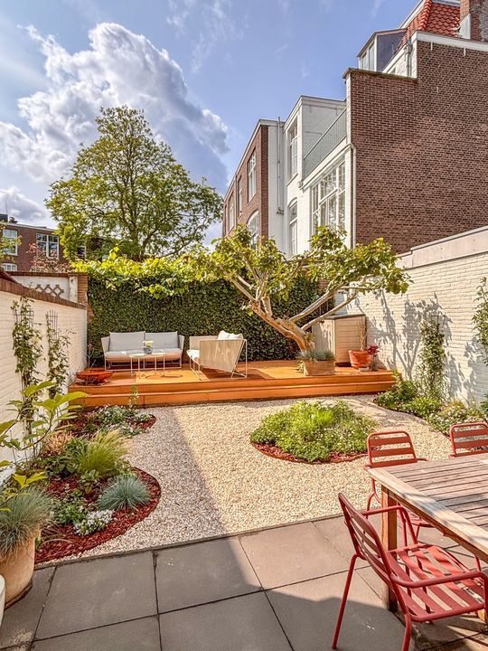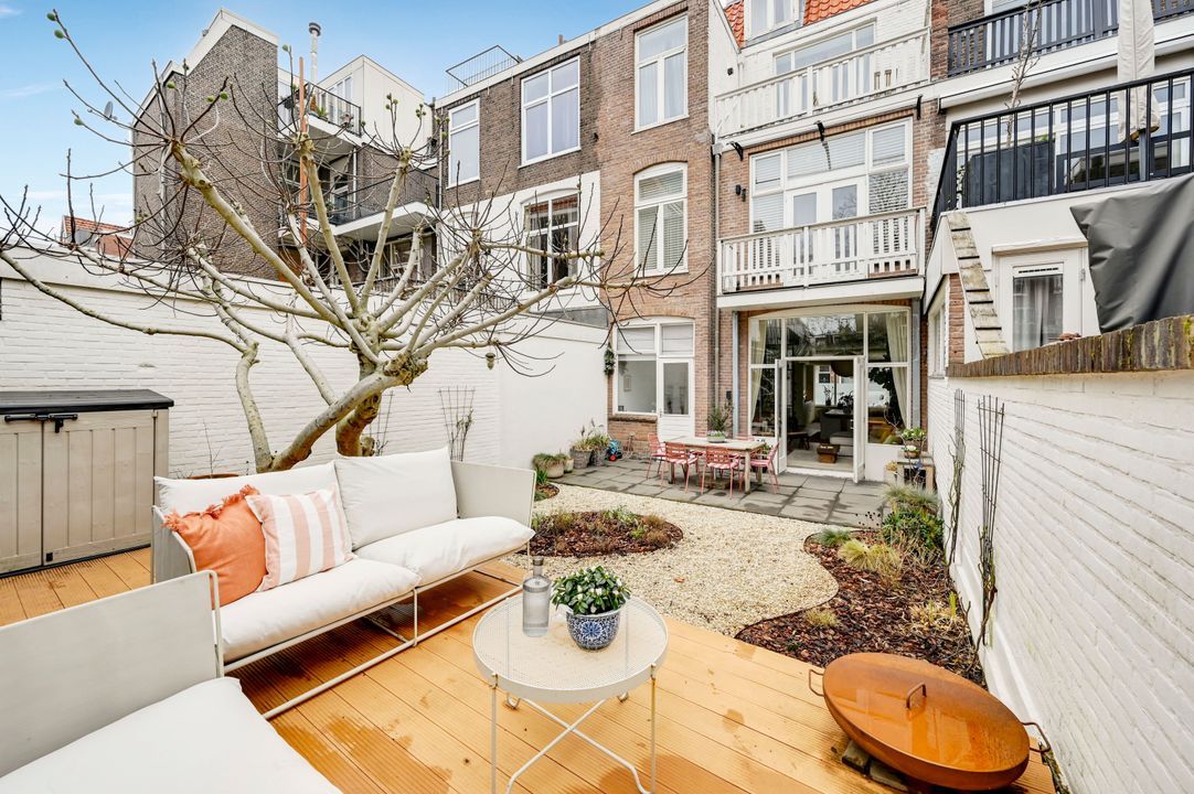 Via dubbele deuren toegang naar heerlijke zonnige achtertuin op het zuiden met verhoogd terras voorzien van composiet vloerdelen.