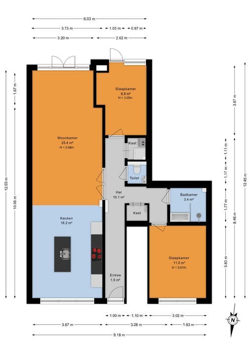 The measurement instruction is based on NEN2580. The measurement instruction is intended to apply a more uniform way of measuring for giving an indication of the use surface. The measurement instruction can not completely close differences in measurement results, for example by differences in interpretation, rounding or limitations in the performance of the measurement.