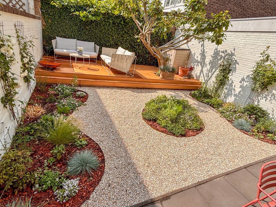 Heerlijke zonnige achtertuin ca. 10.29 x 6.43 op het zuiden gelegen met verhoogd terras voorzien van composiet vloerdelen.