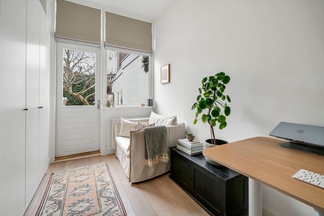 Rear bedroom with access to the back garden, spacious front bedroom.