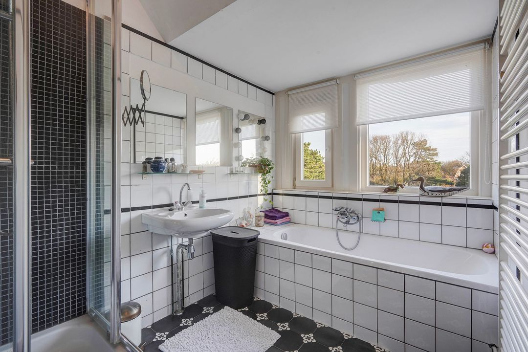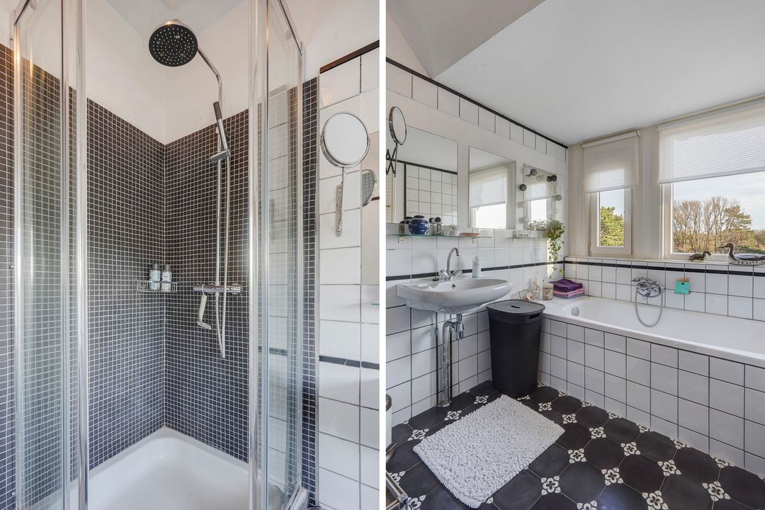 Overloop, toilet met originele wandtegels en fontein, achterzijkamer, riante achterslaapkamer voorzien van 2 vaste kasten, voorslaapkamer voorzien van een dakkapel en 2 vaste kasten, 2e badkamer zwart/wit betegeld voorzien van ligbad, wastafel en douchecabine.