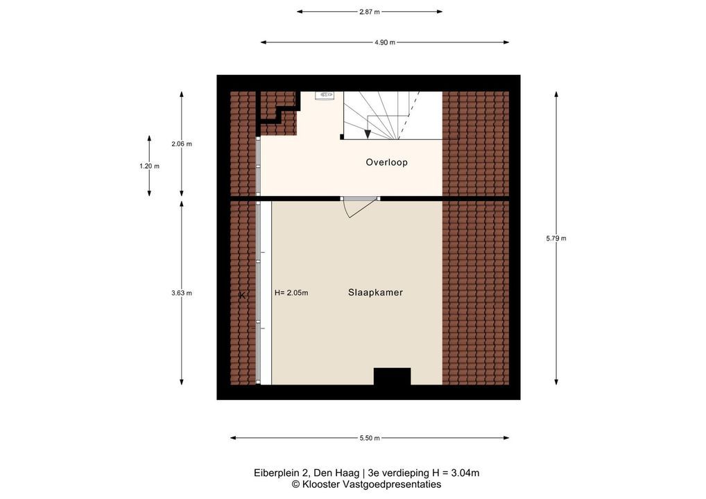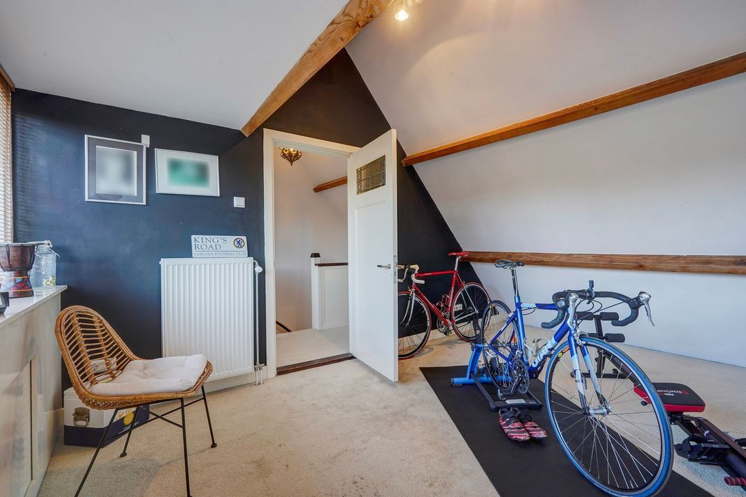 Landing, bedroom with a ridge height of 2.15 meters. The rear roof slope spans almost the entire width and features a dormer window and knee walls.