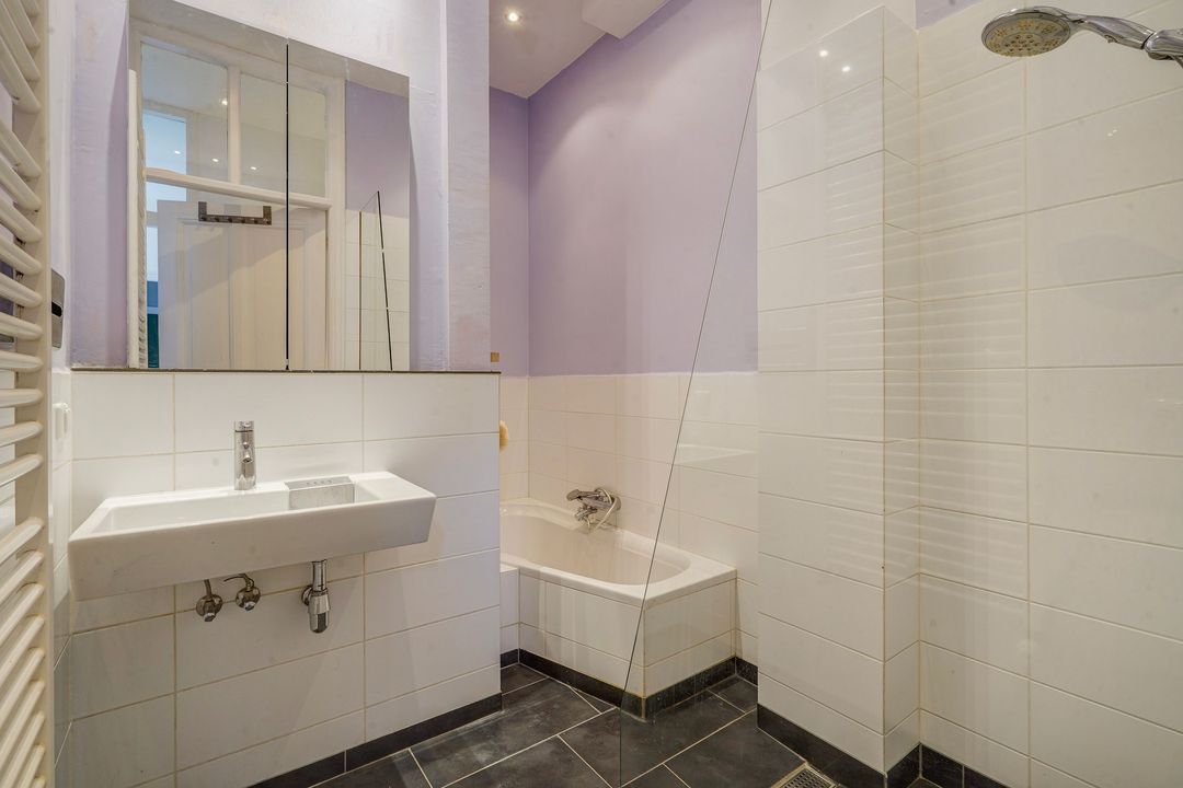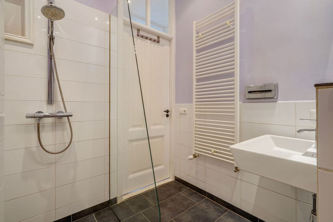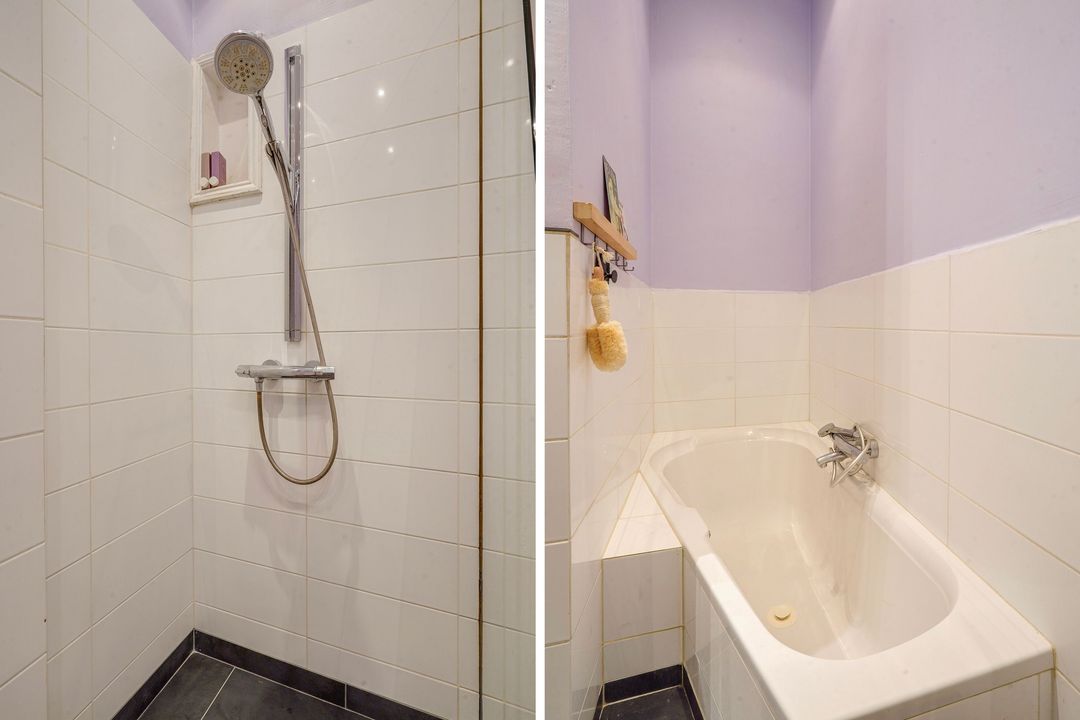 De hal fungeert tevens als study en opstelplaats cv-installatie. De goed onderhouden tussengelegen badkamer is voorzien van een ligbad, inloopdouche, wastafel, spiegelkast en handdoekradiator.