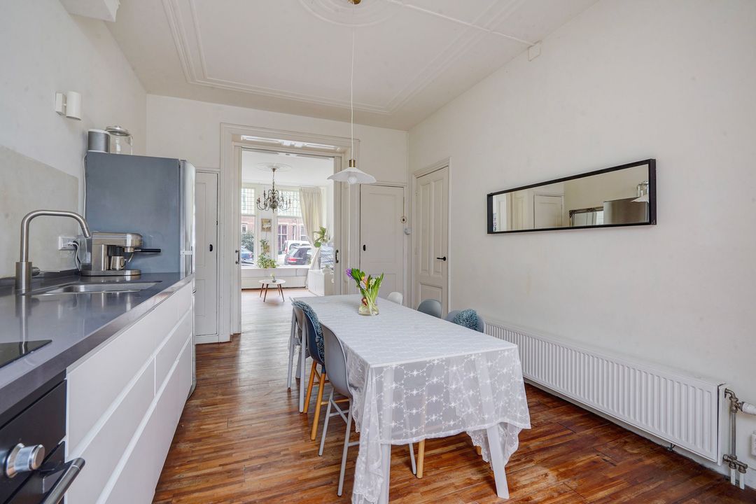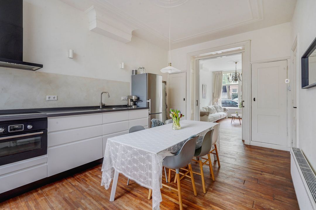 In de achterkamer bevindt zich de moderne open keuken, voorzien van een composiet aanrechtblad, dubbele spoelbak, inductiekookplaat, afzuigkap, inbouw combi-oven en aansluiting voor een vaatwasser.