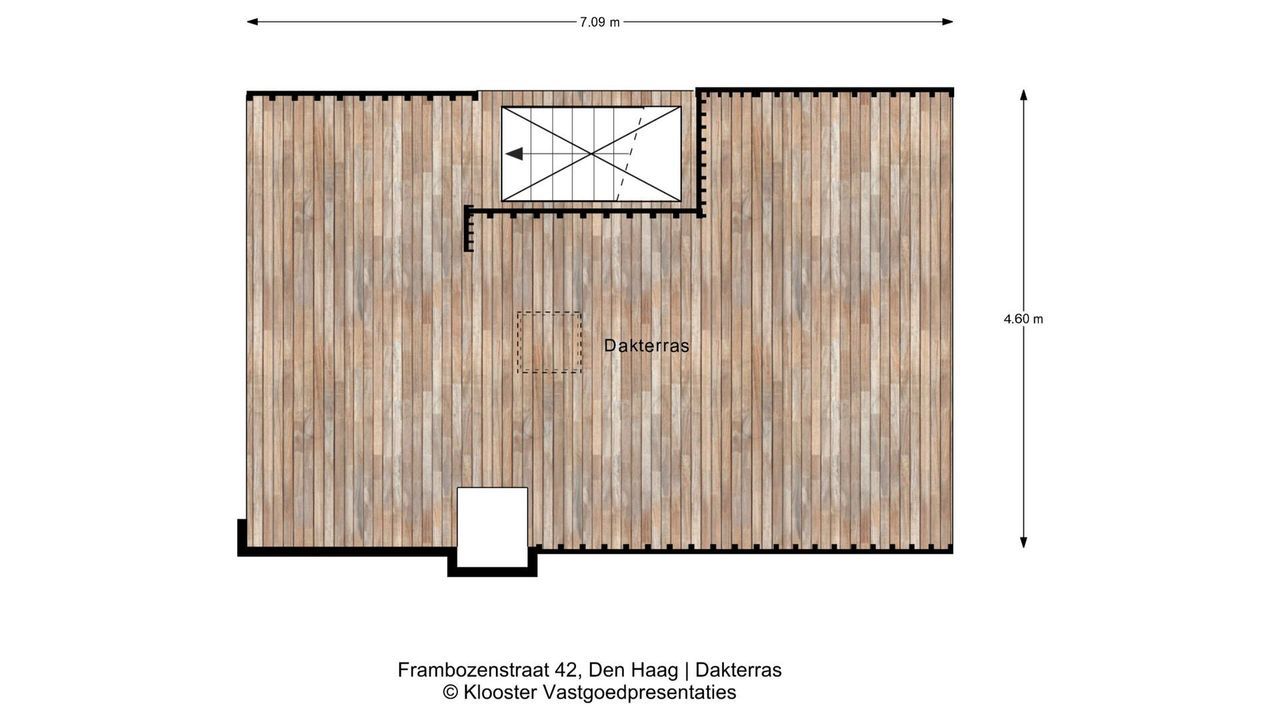 Via vaste trap met riant dakraam toegang tot een fraai aangelegd dakterras met vrij uitzicht over de stad voorzien van houten vlonders en elektra aansluiting.