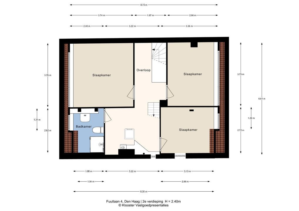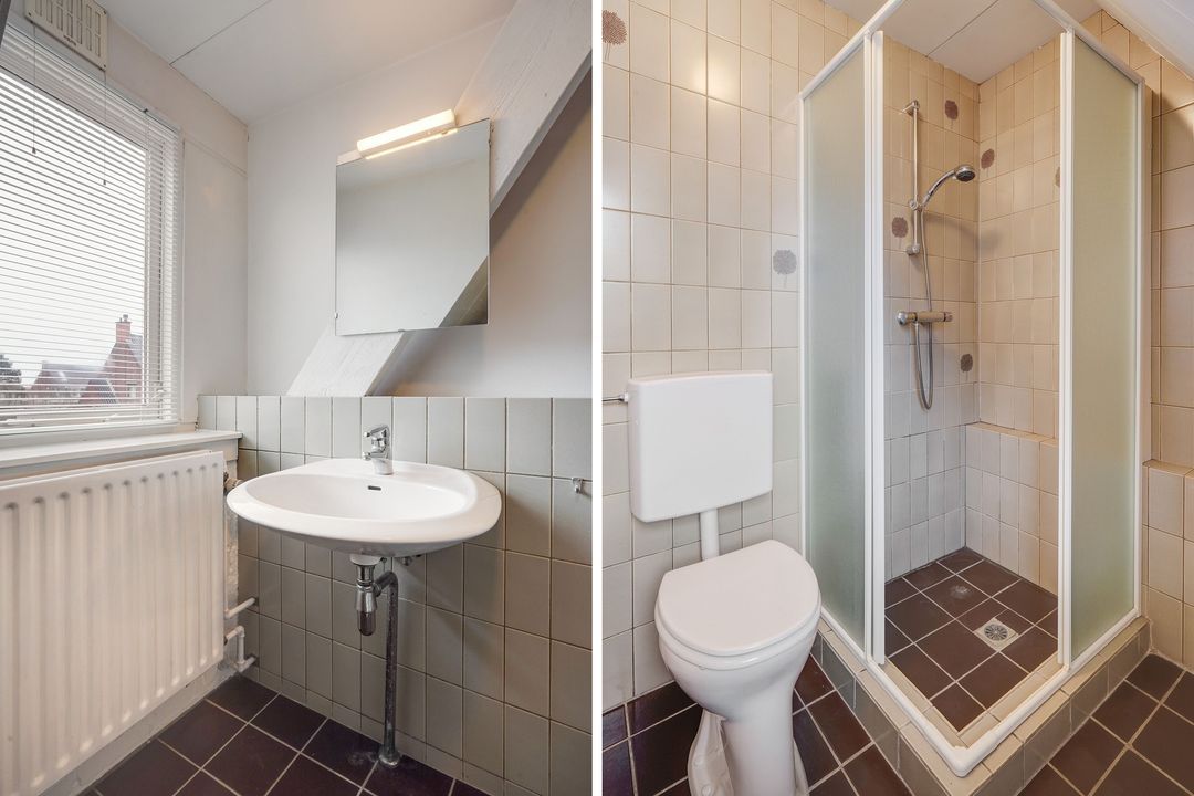 Ruime overloop, achterslaapkamer voorzien van een groot dakkapel, 2e badkamer met toilet, wastafel en douche, 2 voorslaapkamers voorzien van een groot en een kleiner dakkapel.