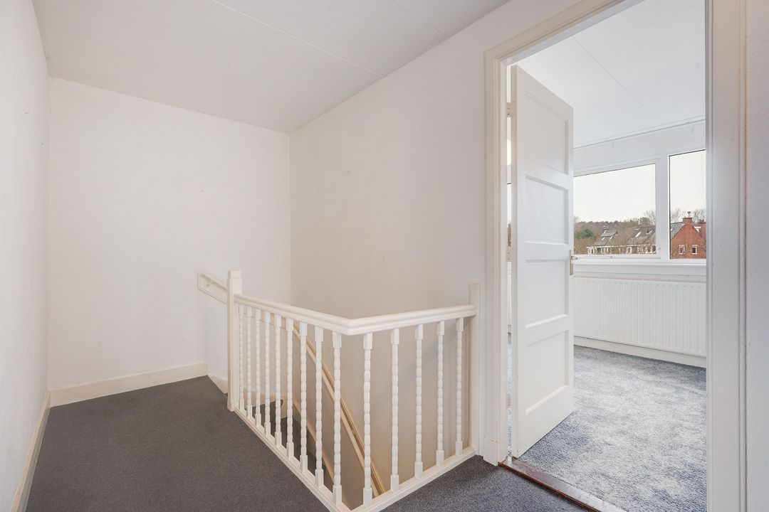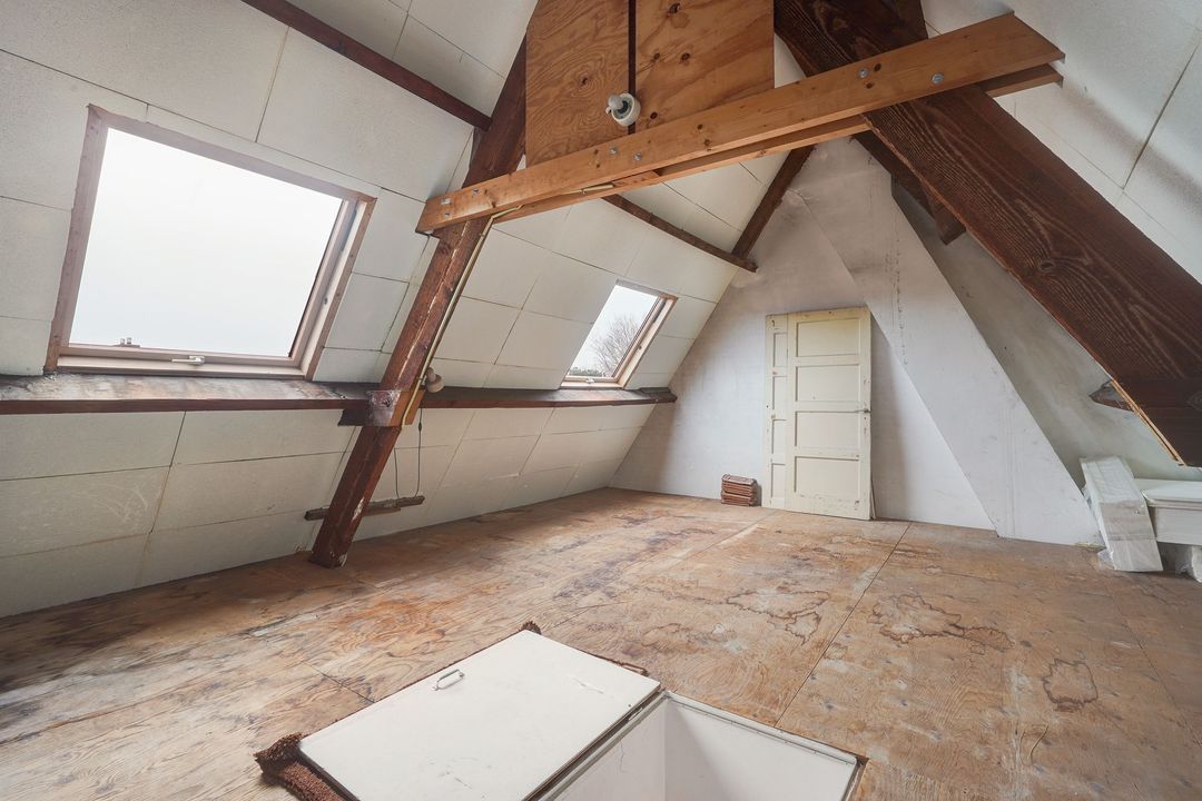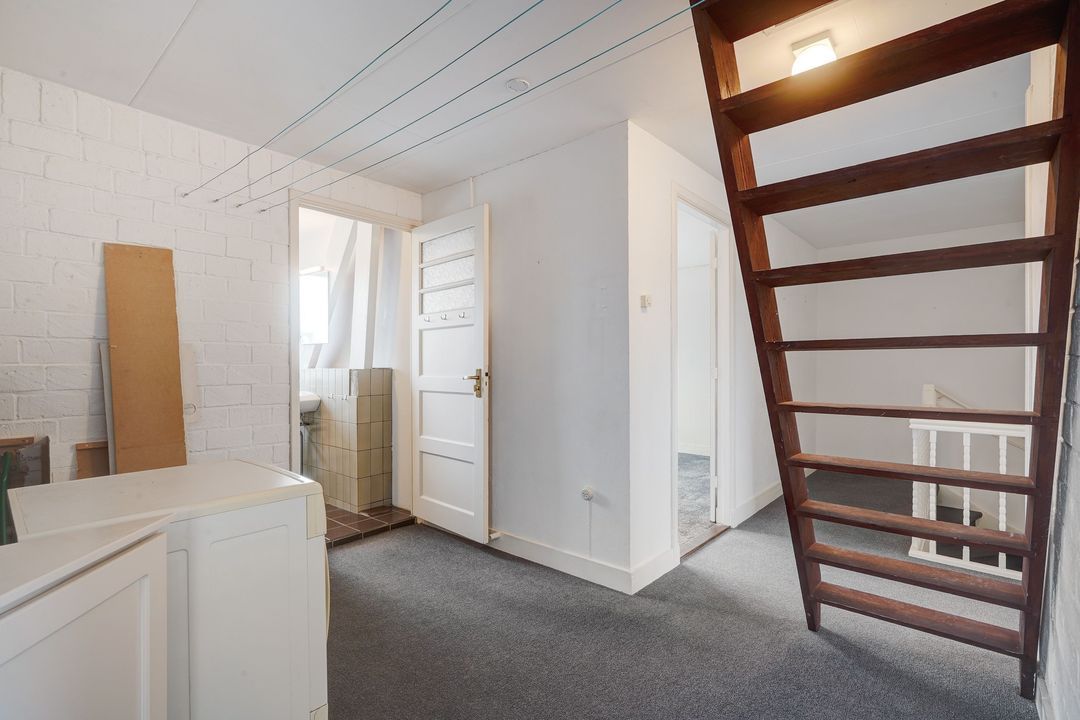 Vanuit de overloop met een vaste trap naar een riante vliering voorzien van 2 dakramen, welke de mogelijkheid biedt om een 4e woonlaag te creëren.