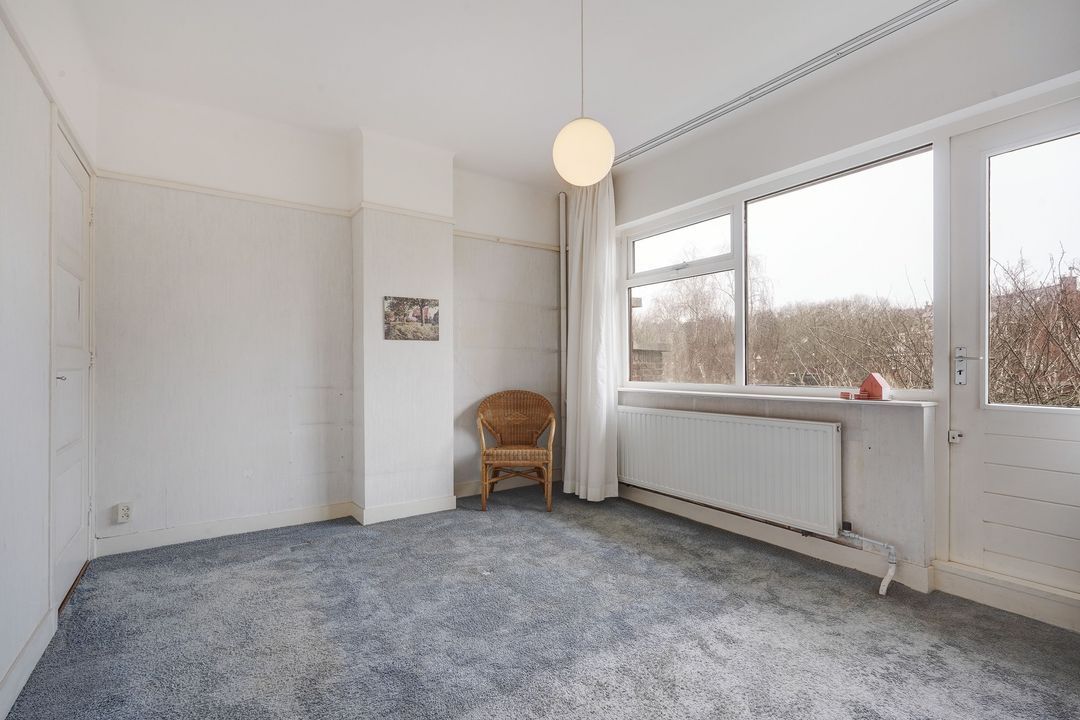 Brede achterzijkamer met tevens toegang naar een zonnig balkon, achterslaapkamer voorzien van 3 vaste kasten.
