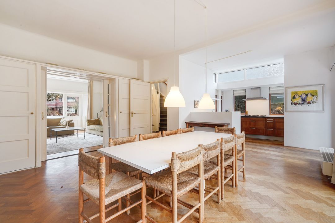 In a beautiful location in the Vogelwijk district, near Eiberplein and the beach access, this spacious, extended 8-room semi-detached house features 2 bathrooms, a garage, and the possibility of creating a 4th floor thanks to the high ridge.