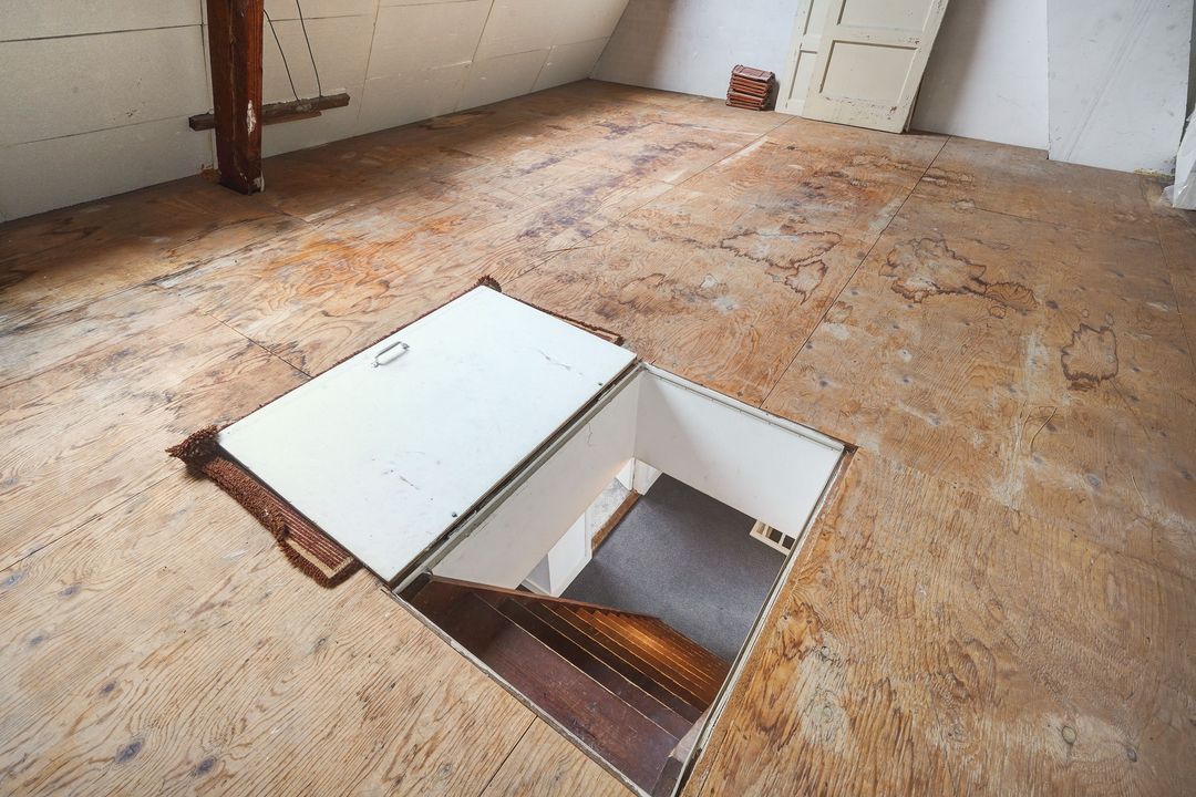 From the landing, a staircase leads to a spacious attic with two skylights, which offers the possibility of creating a fourth floor.