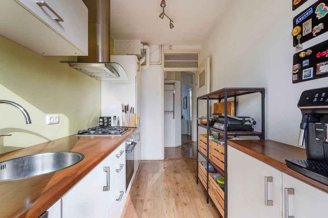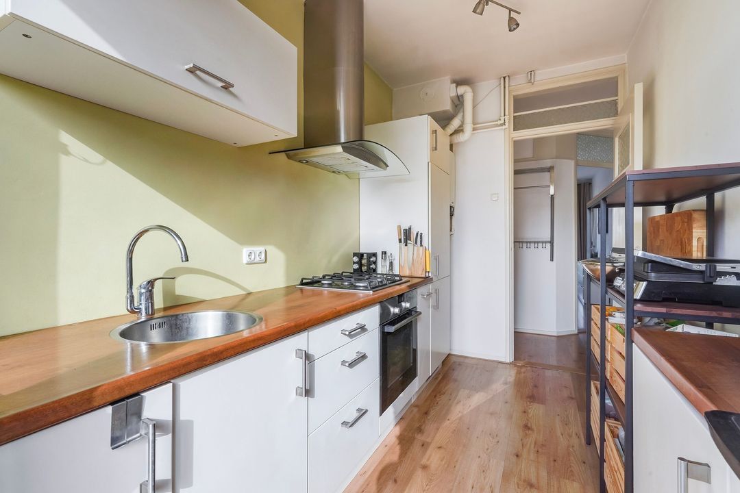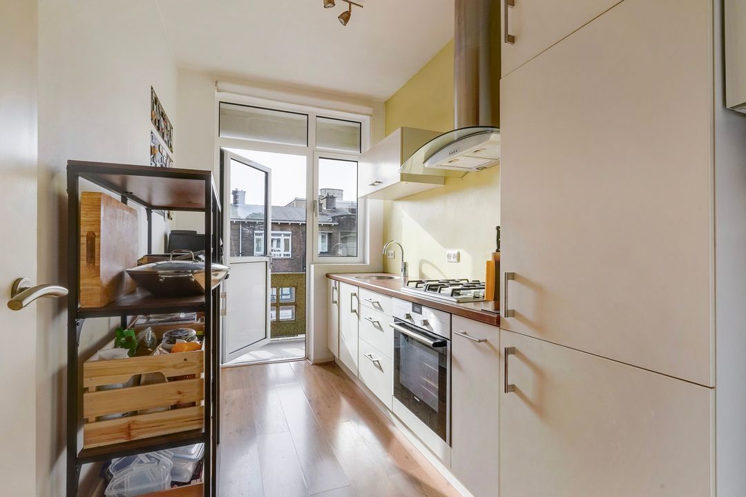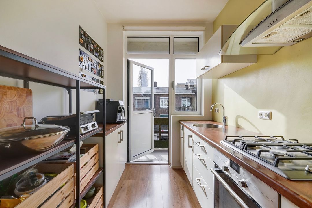 Nette keuken aan voorzijde gelegen voorzien van 4-pits gasfornuis, koel/vriescombinatie, oven en deur naar zonnig balkon op het zuidwesten