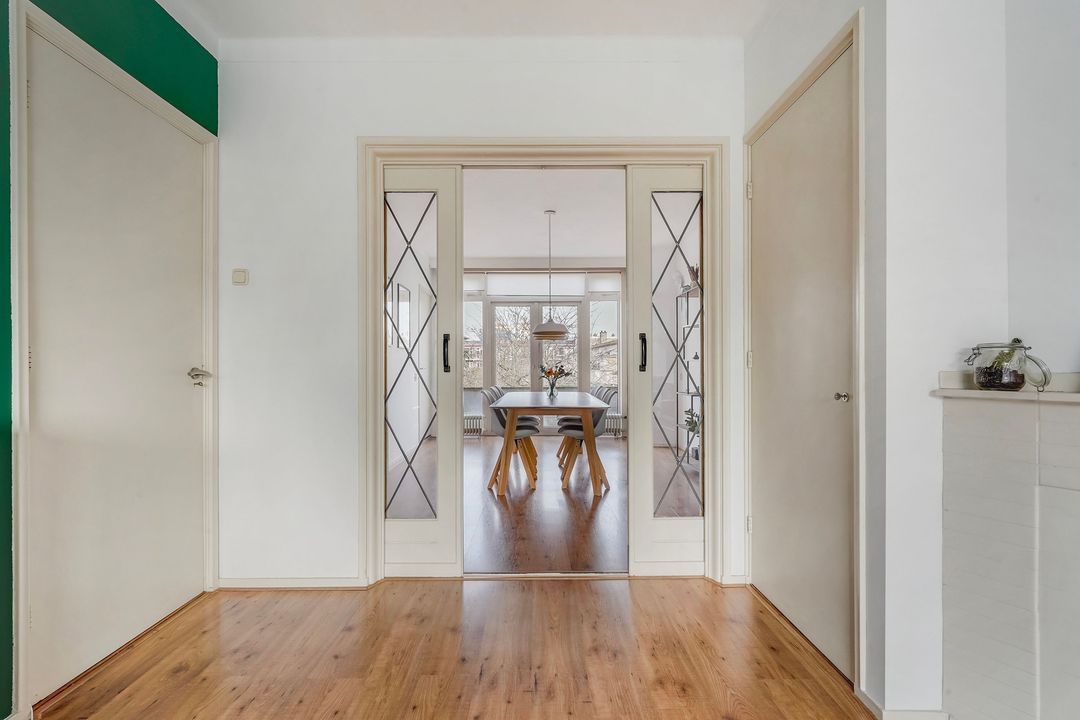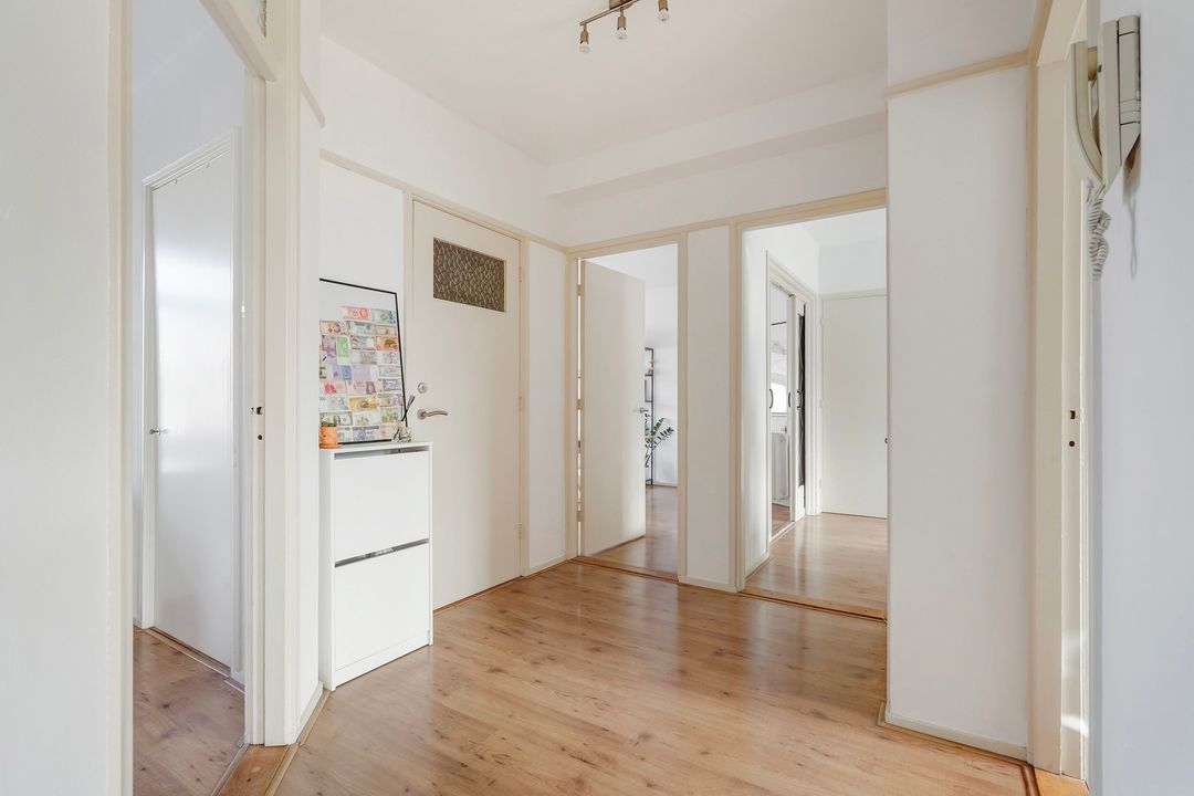 Via gesloten portiek met trap naar de 2e verdieping. Entree appartement, ruime hal met meterkast, separaat toilet met fontein en geeft toegang tot alle vertrekken.