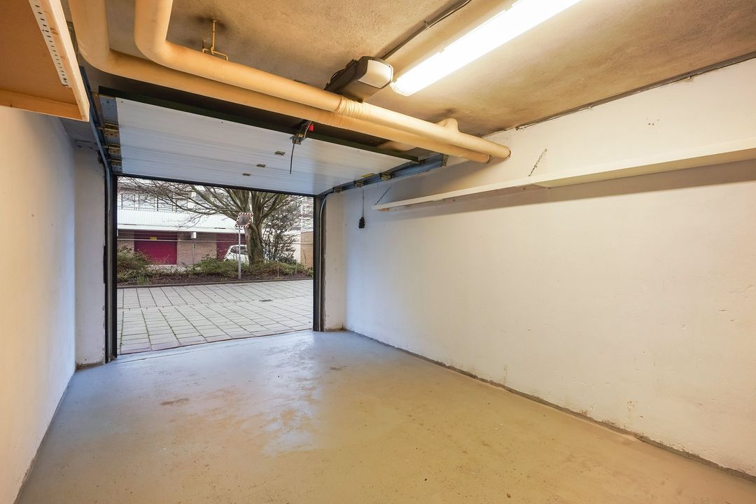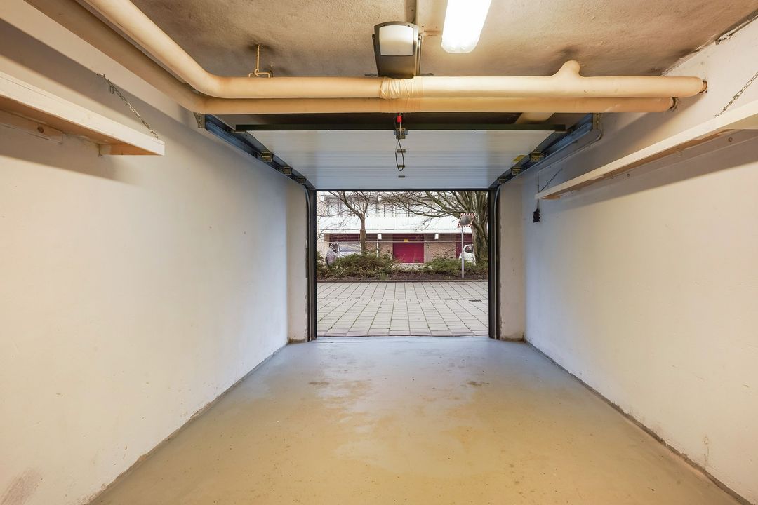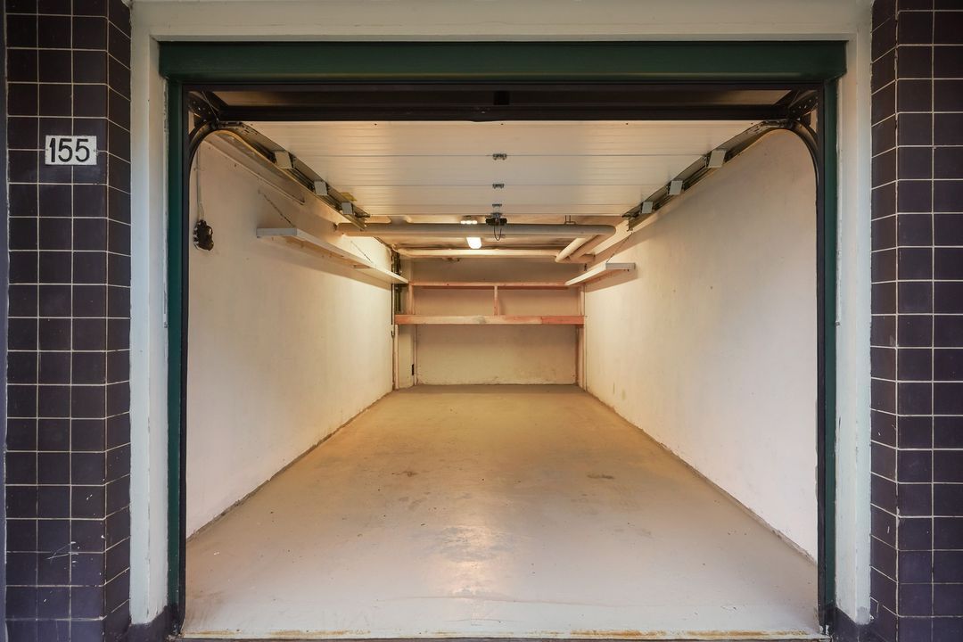 Deze nette garagebox met automatische, op afstand bedienbare kanteldeur, is gelegen onder een appartementencomplex.