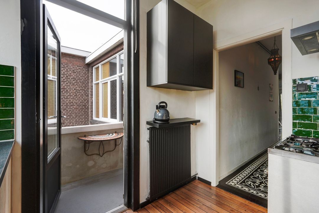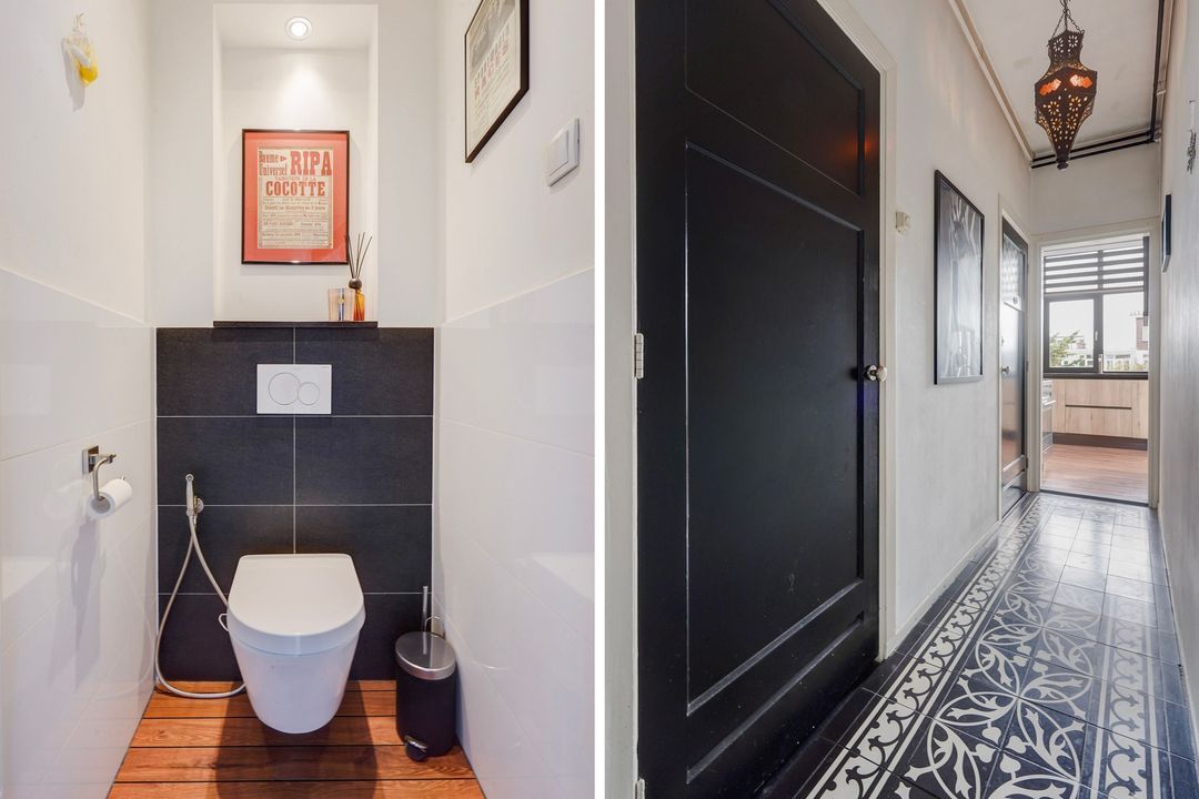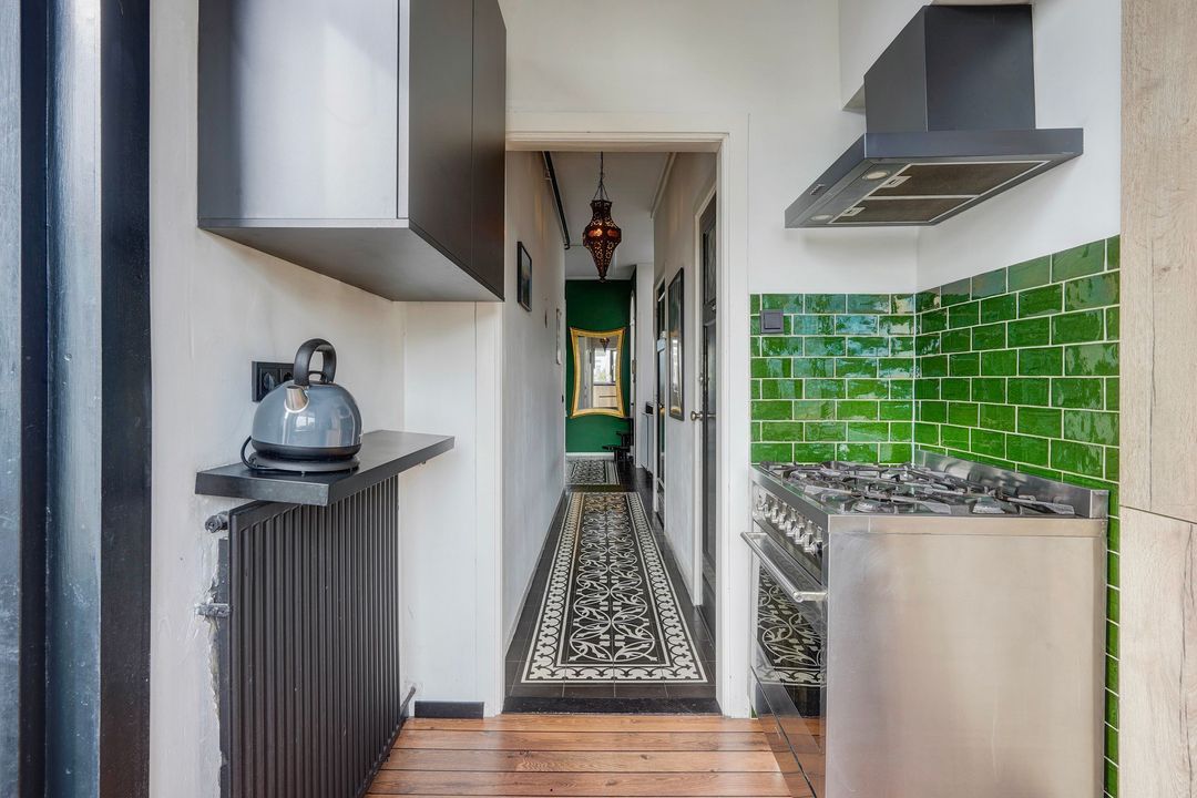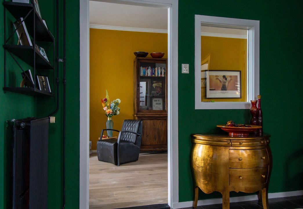 Through an authentic "Hague" porch with wide steps, you enter the apartment on the first floor. The hallway features the meter cupboard and internal stairs to the second floor.