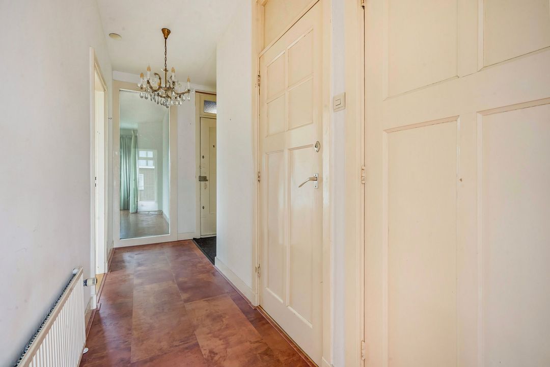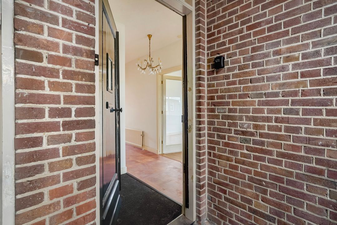 Via fraai open portiek met granitovloeren en glas in lood bovenlichten, trap naar de 2e verdieping.