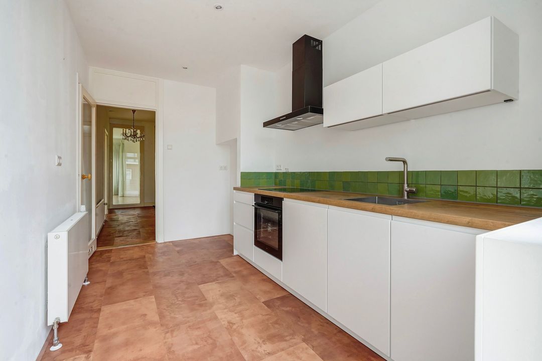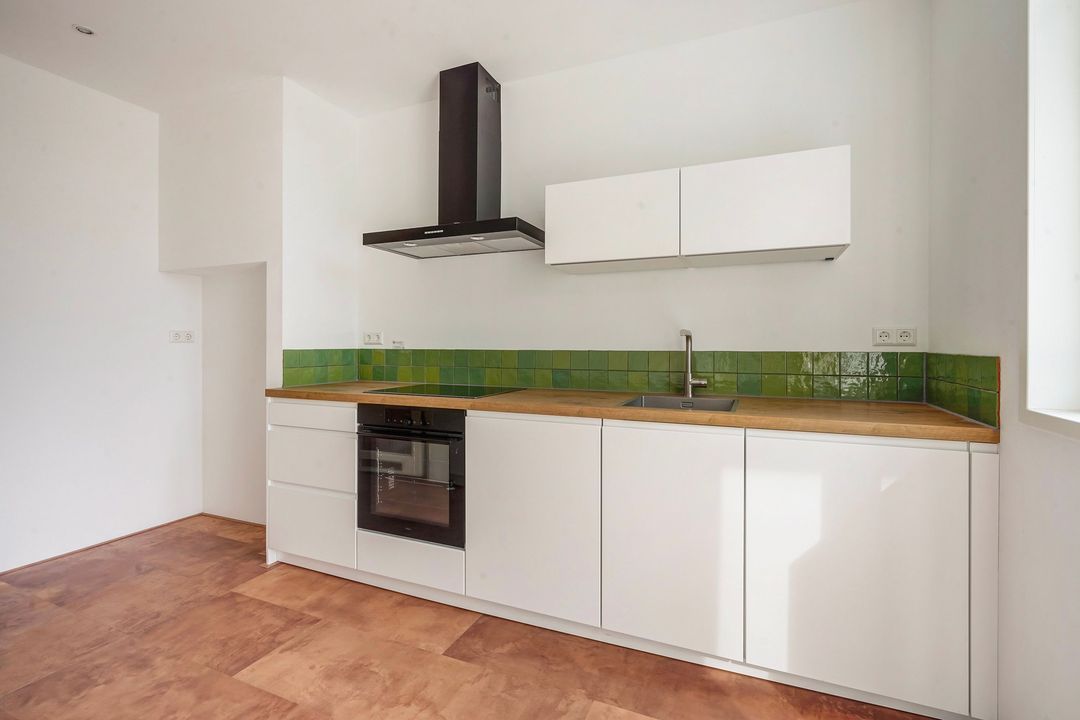 Aan de achterzijde gelegen, ruime en moderne keuken voorzien van inductiekookplaat, afzuigkap, oven, vaatwasser en tevens deur naar zonnig achterbalkon, gelegen op het zuidoosten.