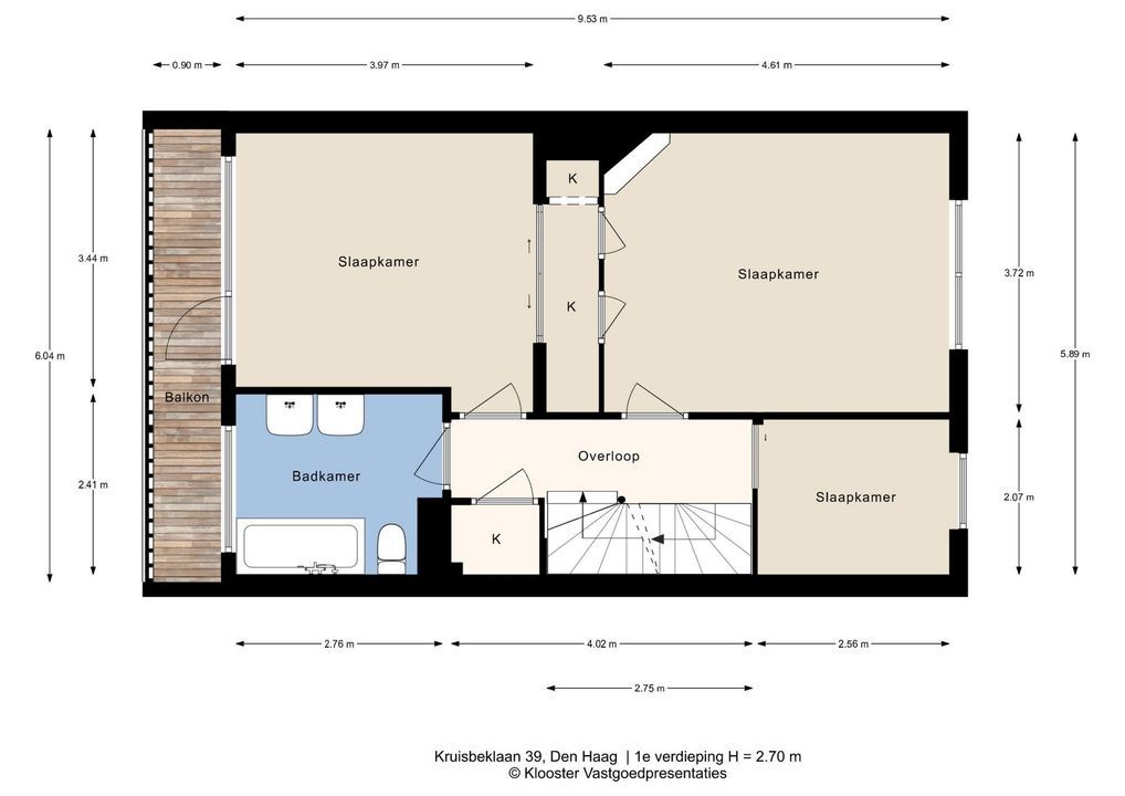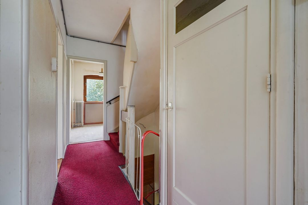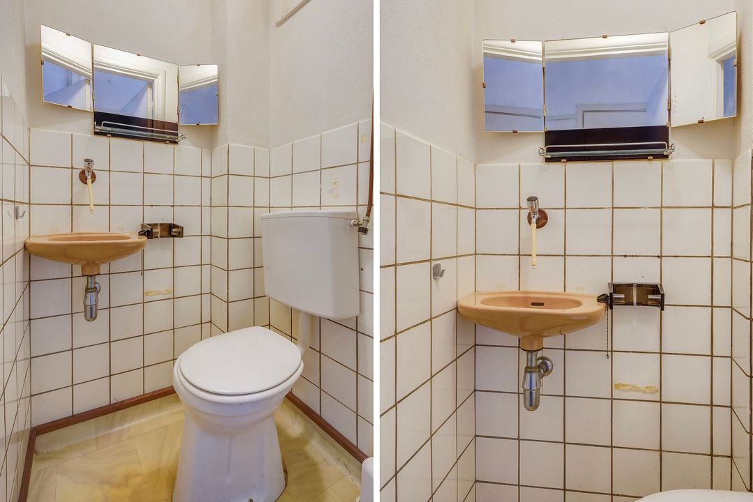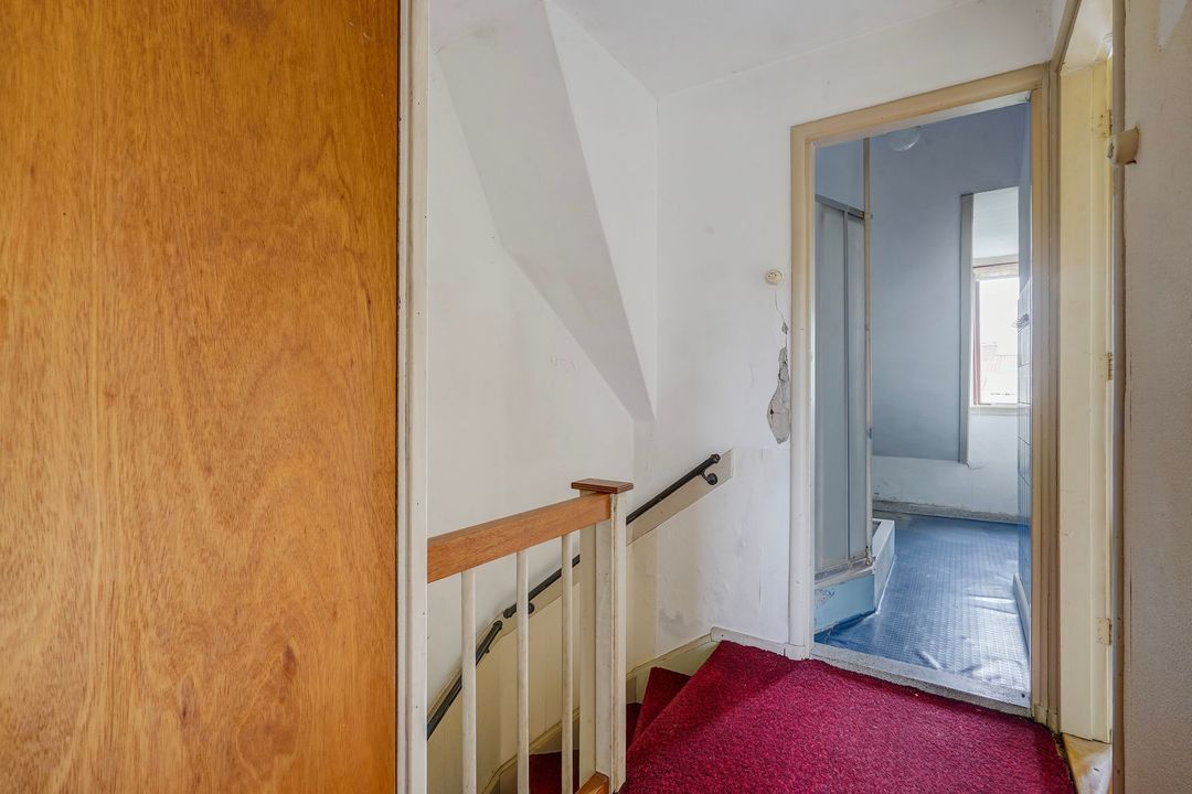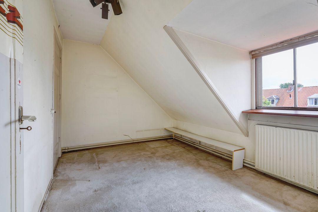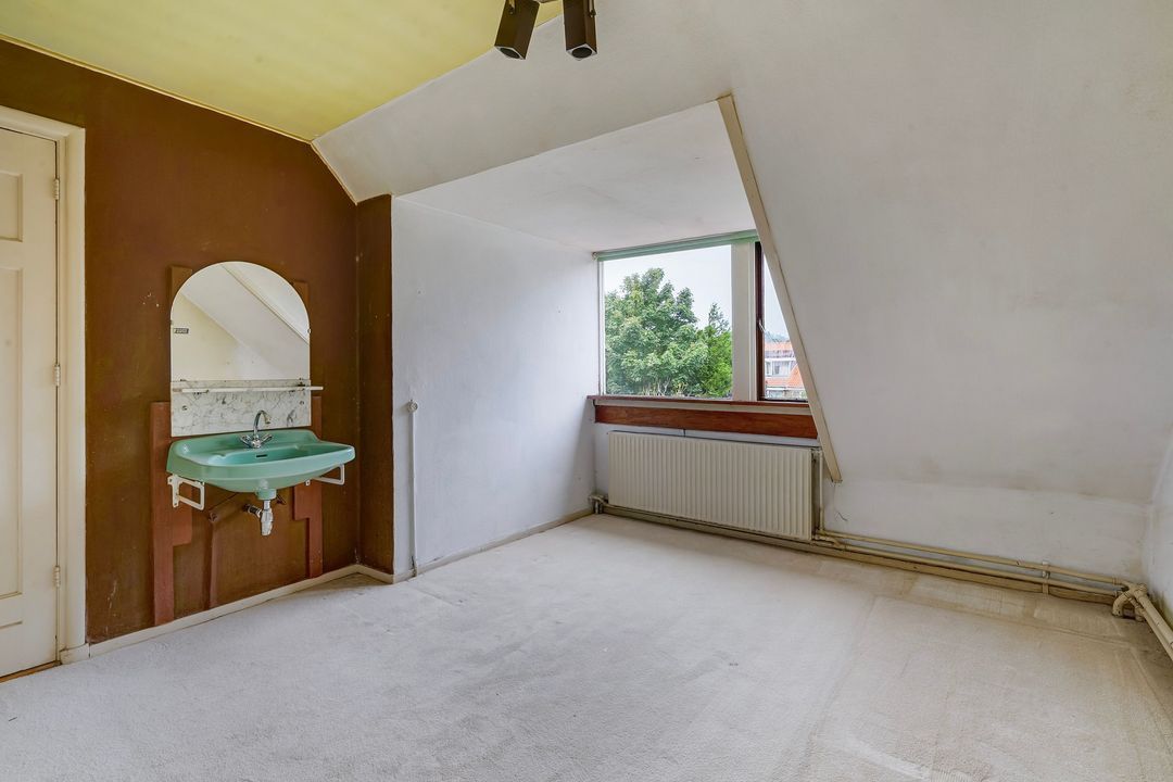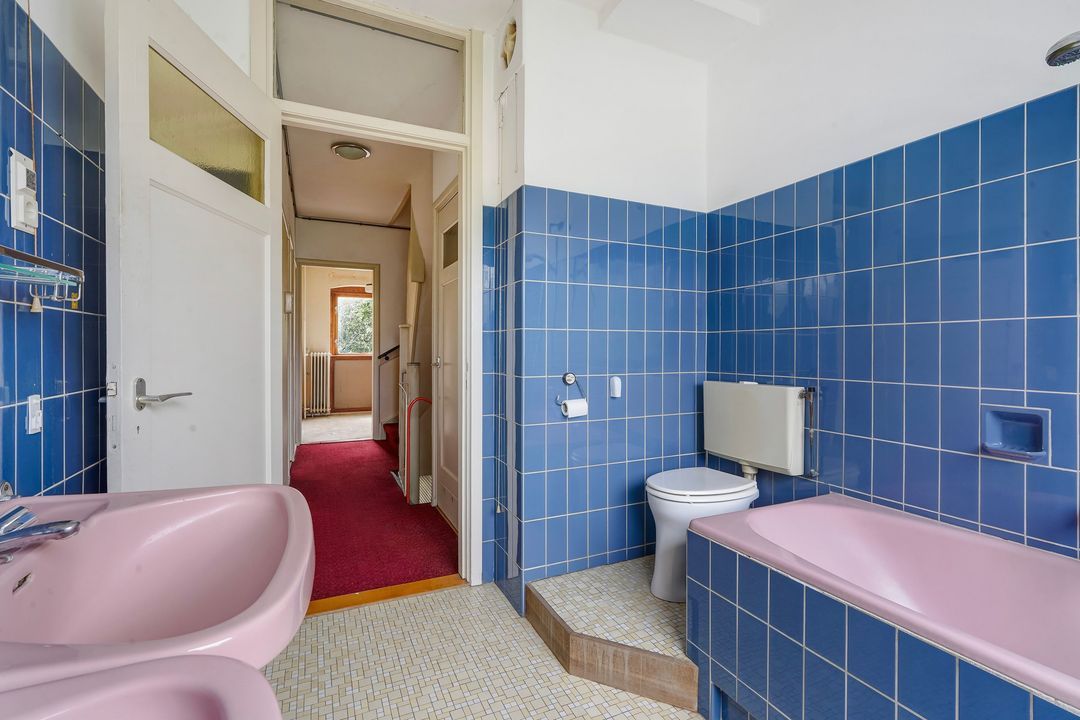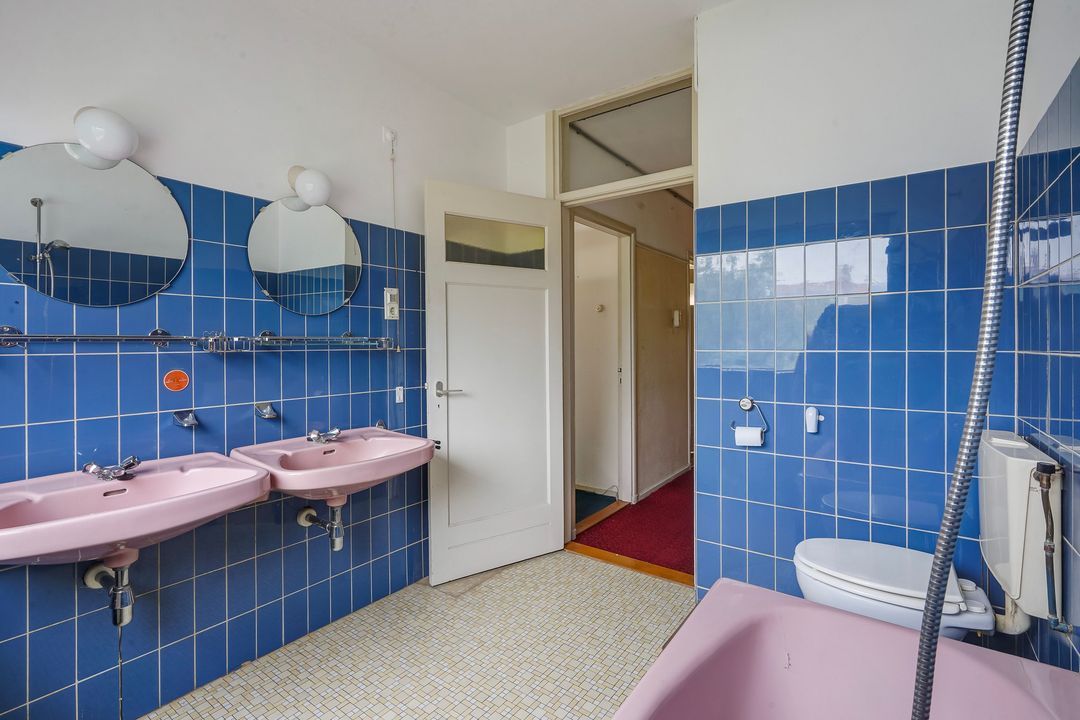 Overloop, vaste kast met geiser en aansluiting voor wasmachine- en droger. Voorzijkamer, lichte voorslaapkamer met vaste kasten en originele schuifseparatie naar de achterslaapkamer en deur naar het achterbalkon, gelegen over de gehele breedte van de woning op het noordoosten. Badkamer aan de achterzijde voorzien van ligbad, toilet en 2 wastafels.