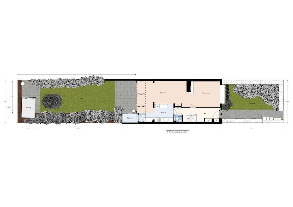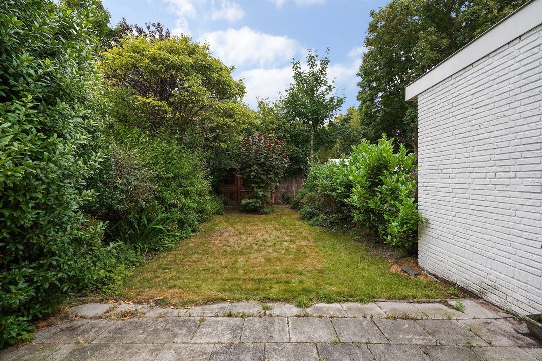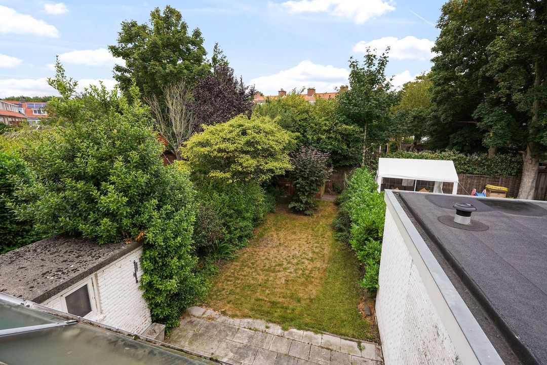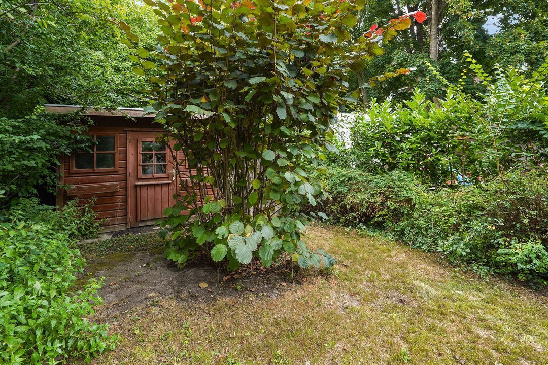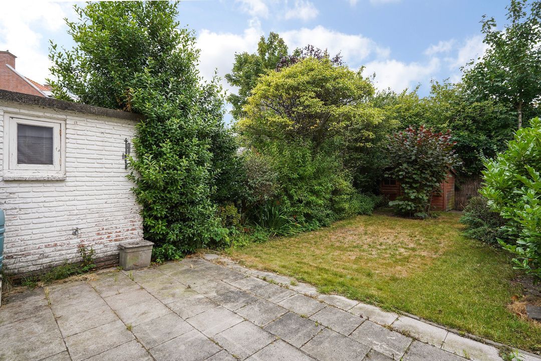 Via schuifpui toegang tot de riante, zonnige 17 meter diepe achtertuin gelegen op het noordoosten met veel privacy en voorzien van een houten berging.