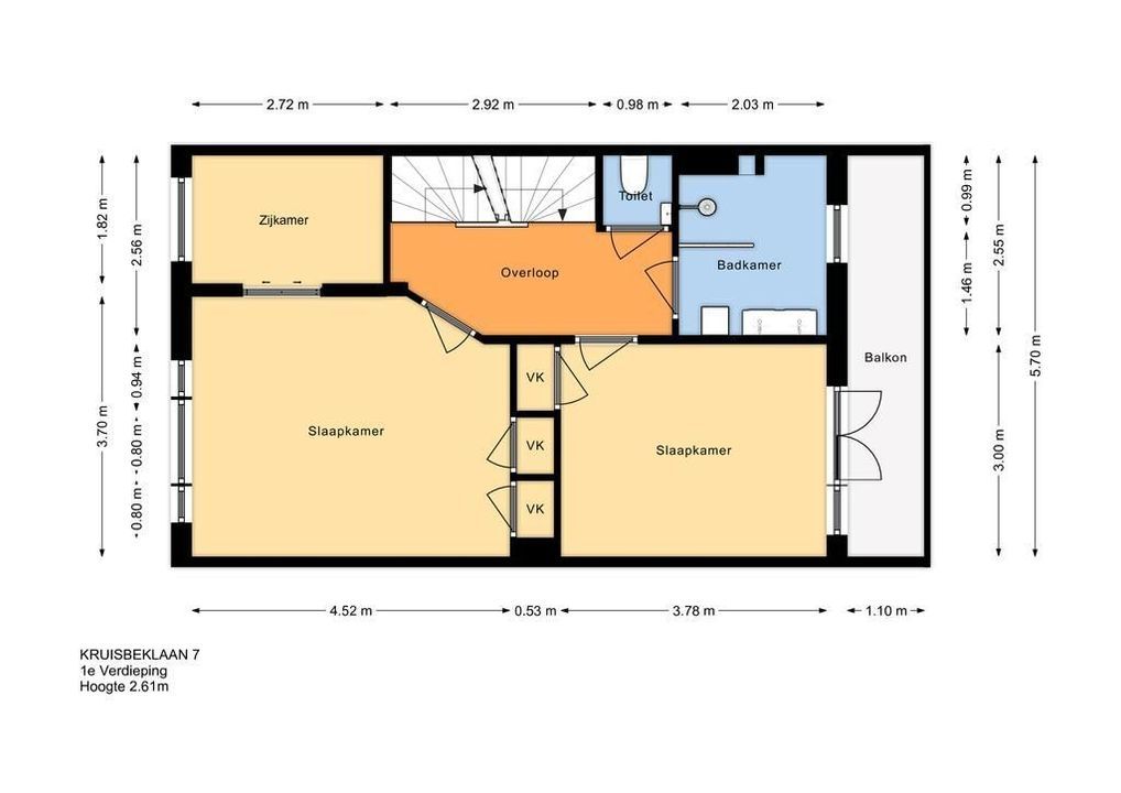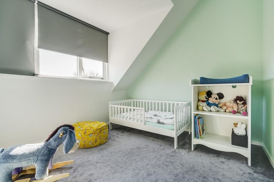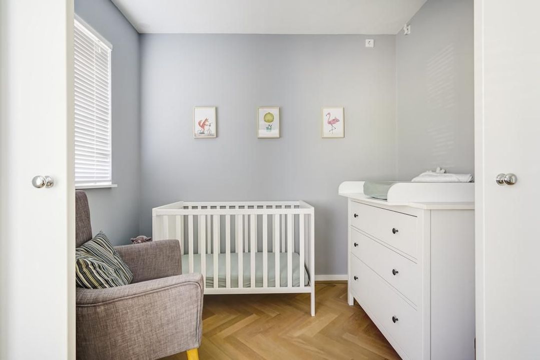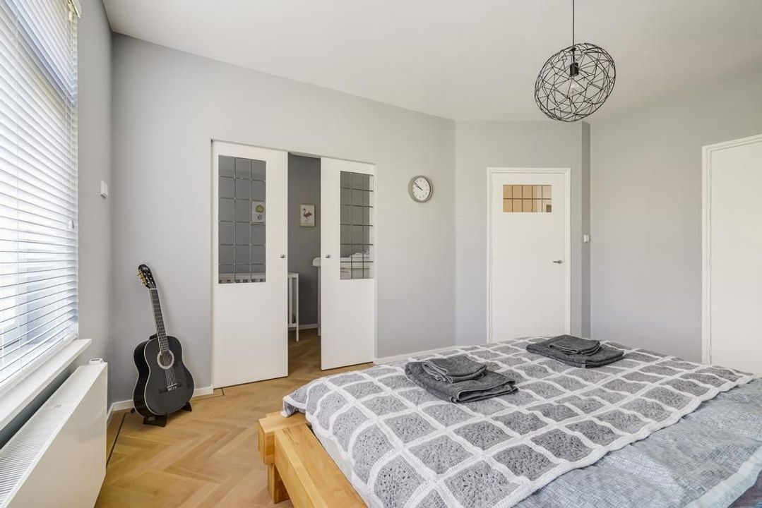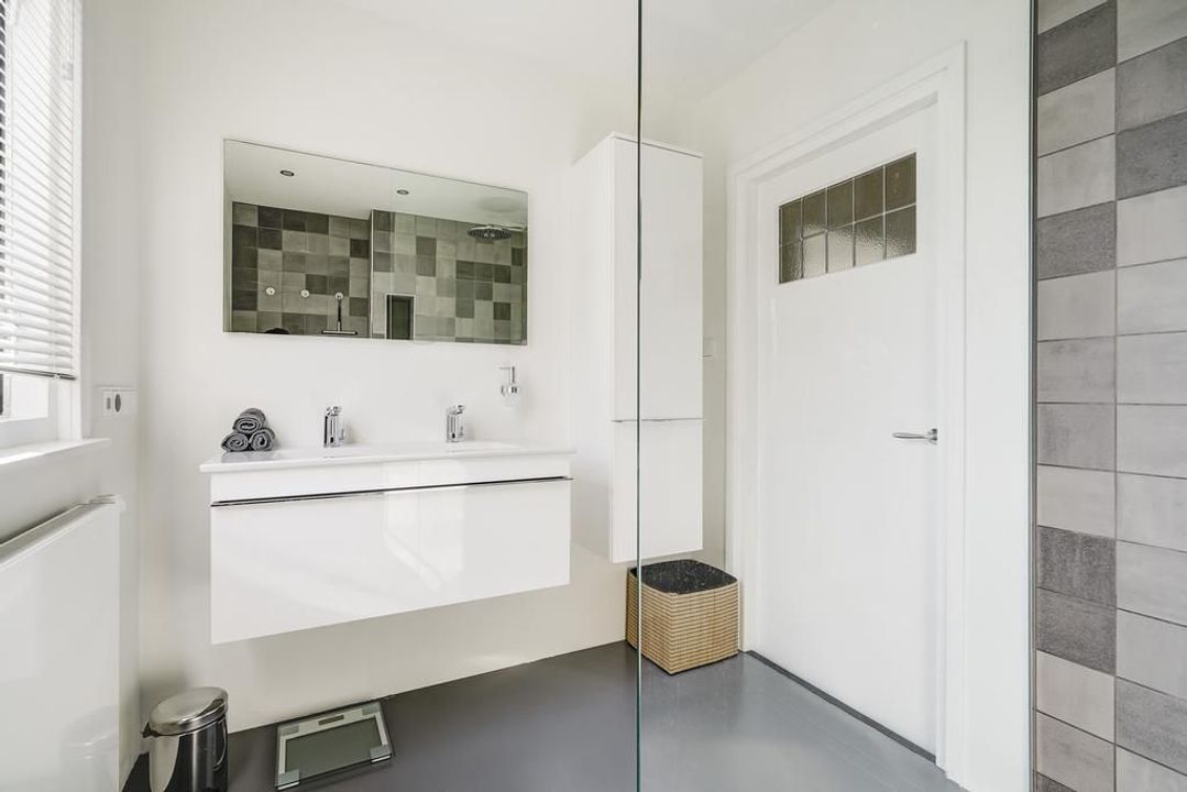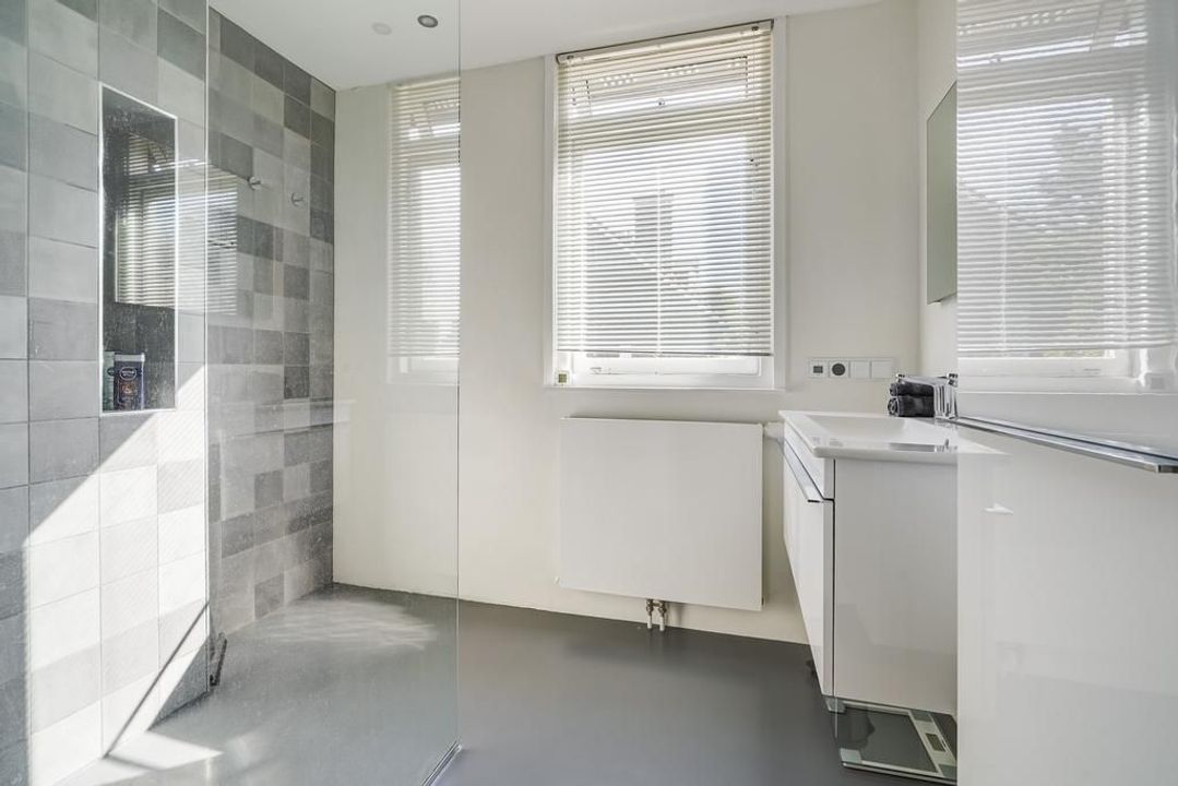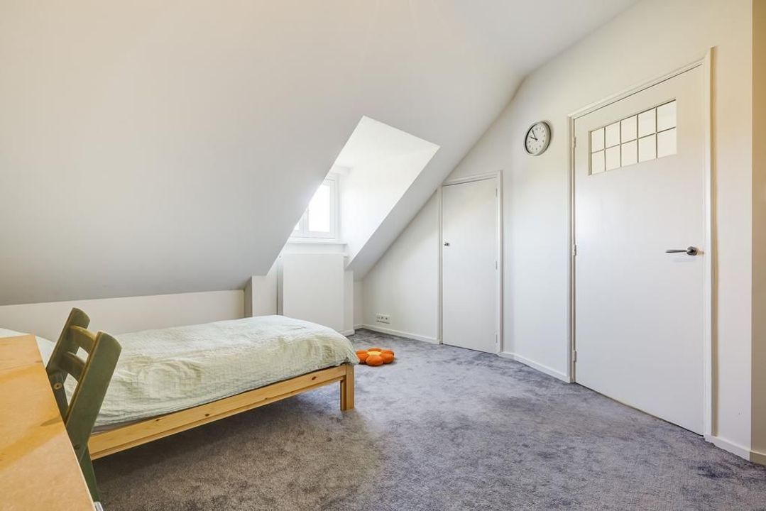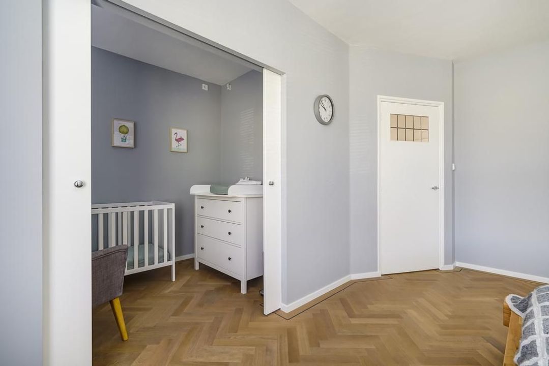 Ruime overloop met visgraatparketvloer doorgelegd door gehele verdieping, modern vrij hangend toilet met fontein, achterslaapkamer met vaste kast en openslaande deuren naar balkon voorzien van elektrische zonwering, moderne badkamer met inloopdouche, wastafelmeubel met dubbele wastafel, vloerverwarming en radio. Riante voorslaapkamer met bijgetrokken zijkamer met 2 vaste kasten.