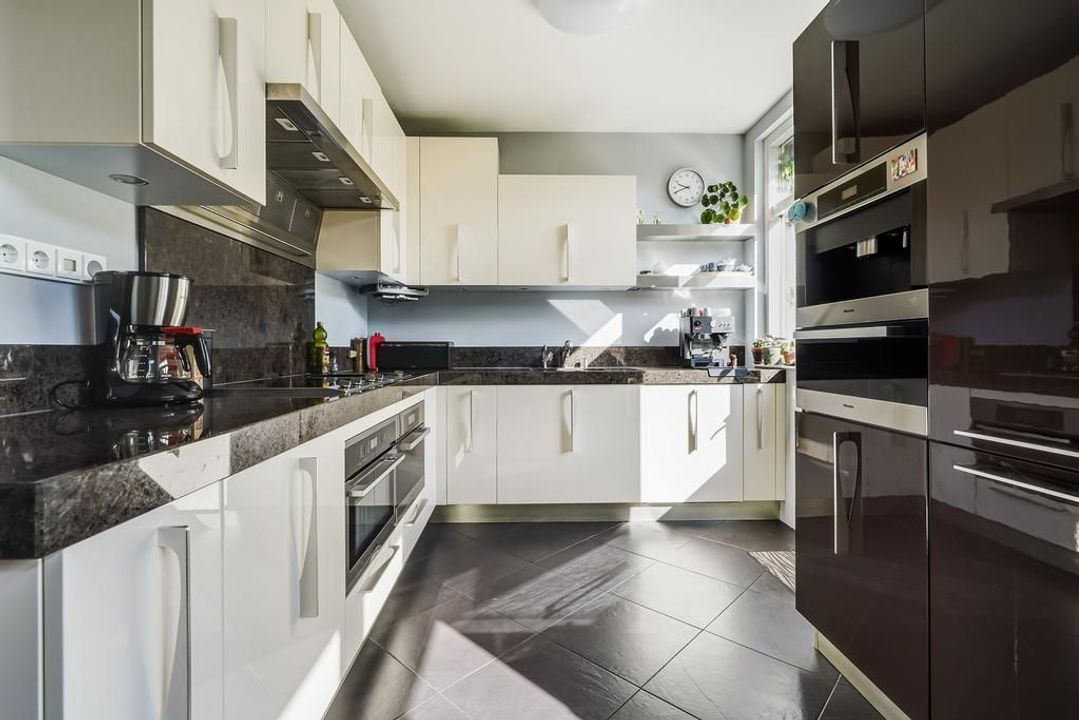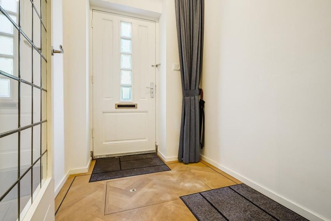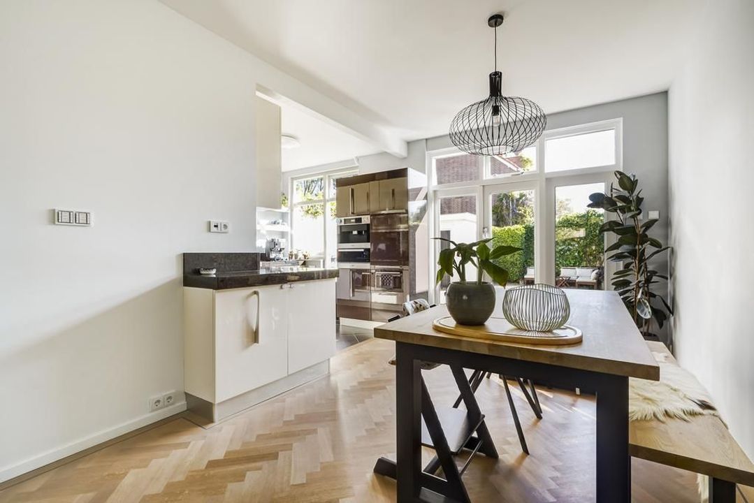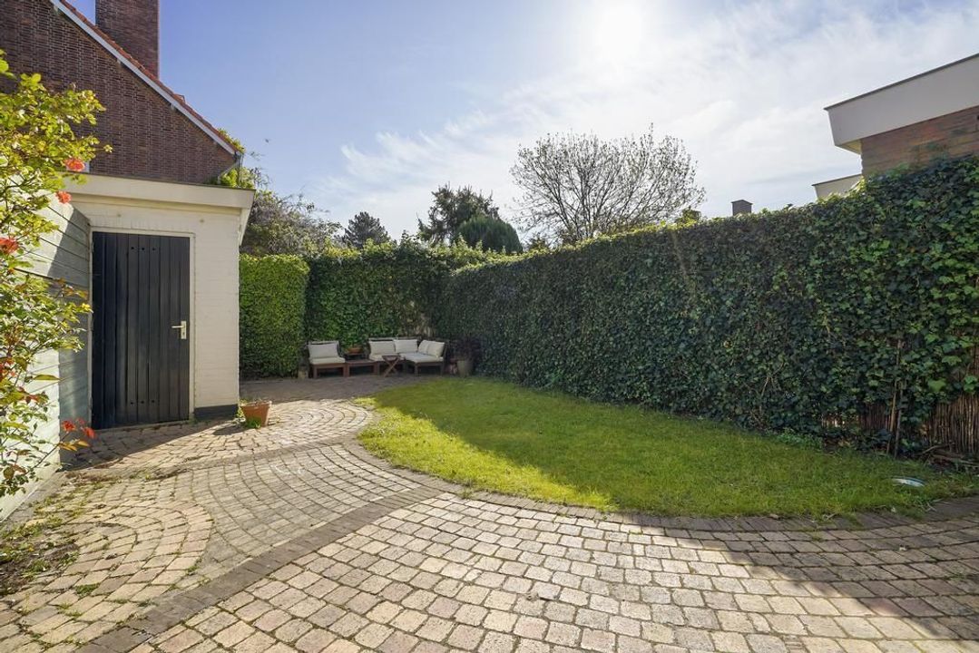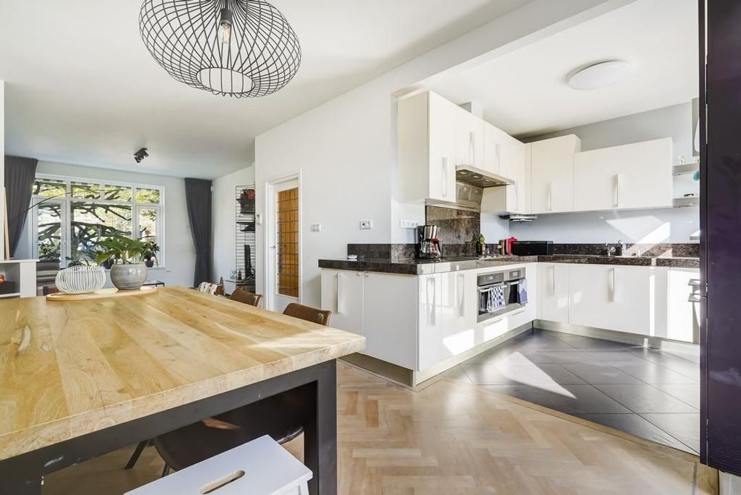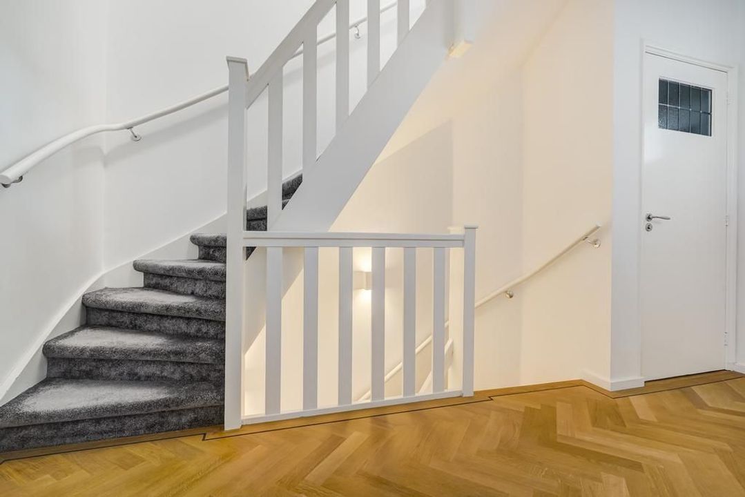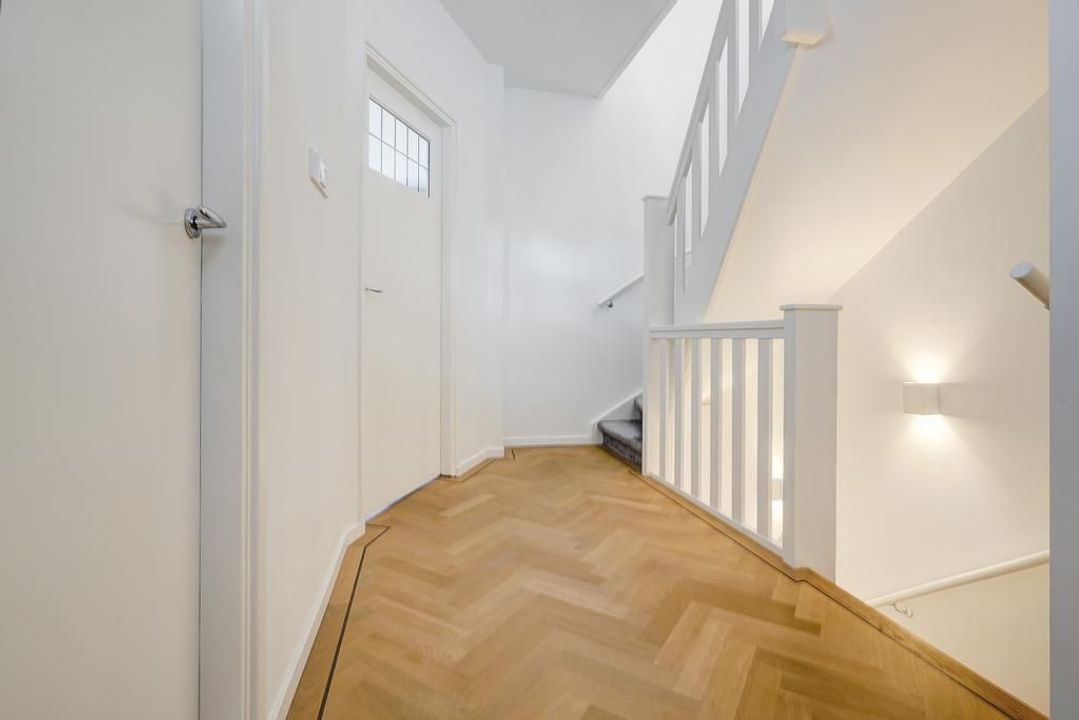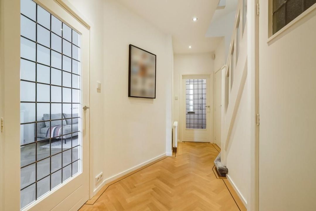Well-kept front garden, entrance with vestibule with draft door with stained glass and herringbone parquet floor over the entire ground floor, spacious hall, wardrobe, modern wall-mounted toilet with hand basin, attractive living-dining room with wood-burning fireplace and modern beautiful open kitchen with composite worktop, underfloor heating and various built-in appliances (Miele) such as a wok and induction hob, steam oven, combi oven, dishwasher, warming drawer, fridge/freezer with icemaker, coffee maker and cooker, access to the backyard located on the Northeast with stone shed and back entrance.