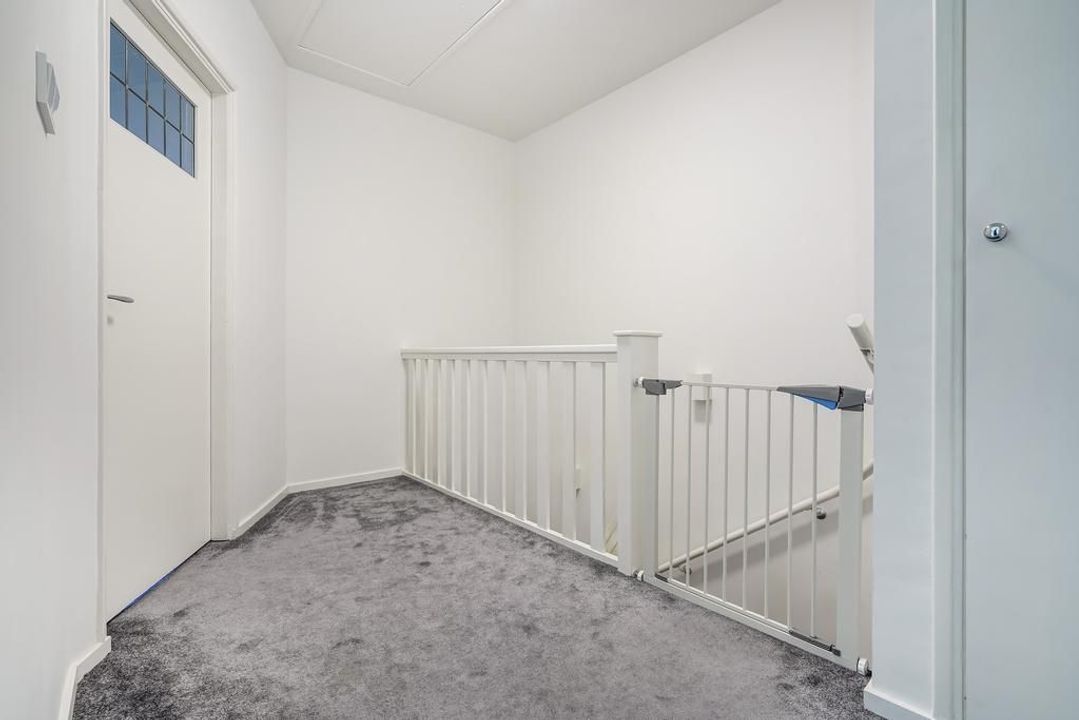 Ruime overloop met toegang naar de vliering over de gehele woning, vaste kast met opstelplaats combiketel en aansluiting wasmachine.