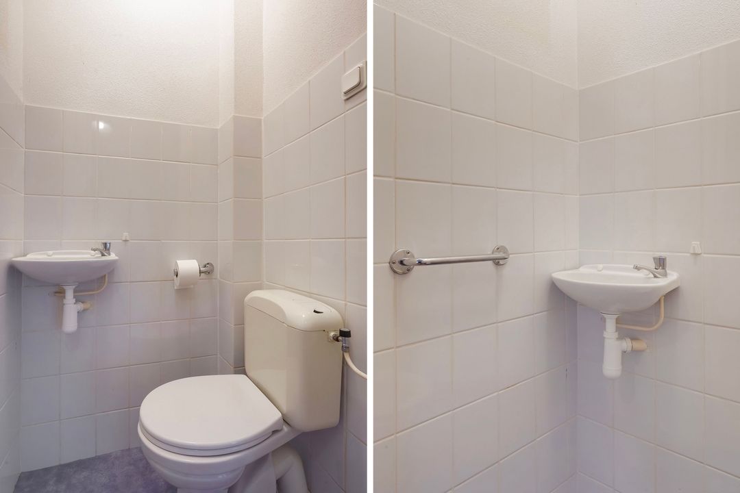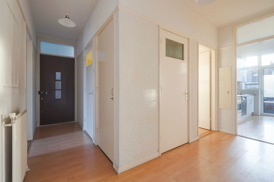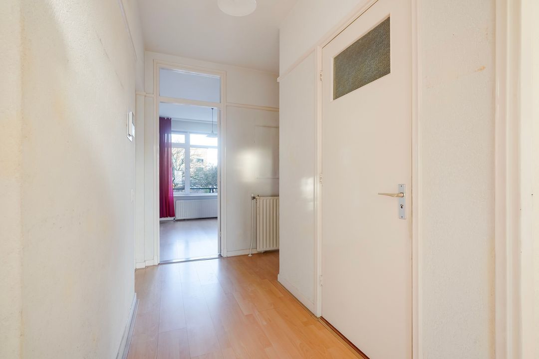 Entree appartement, L-vormige gang met toegang tot alle vertrekken, meterkast en een separaat toilet met fontein. Geheel betegelde badkamer voorzien van douchecabine, wastafel, spiegelkast en wasmachineaansluiting.