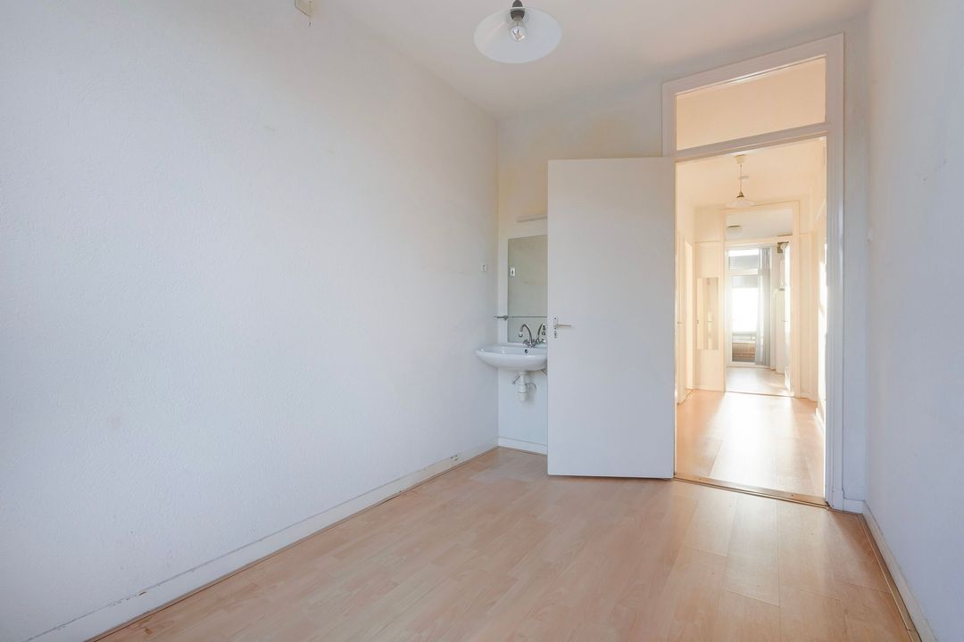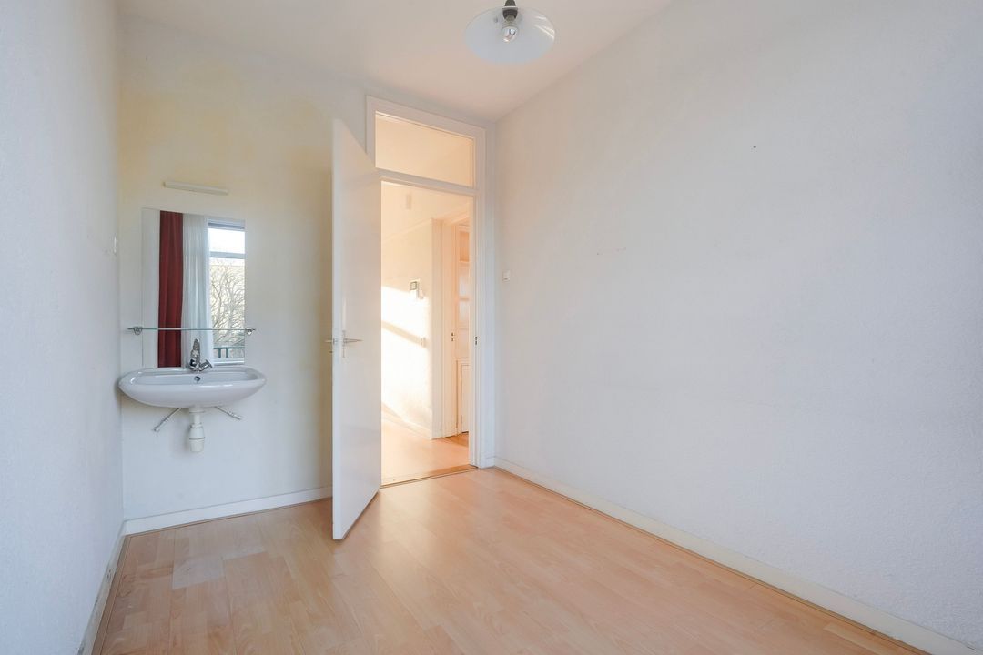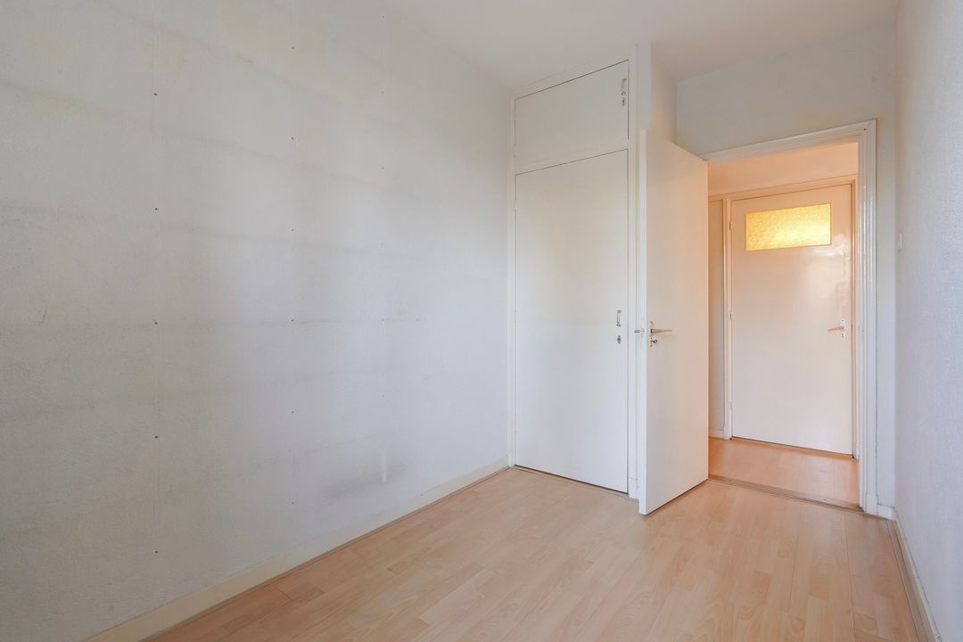 Eerste voorslaapkamer met vaste kast en een tweede voorslaapkamer met een wastafel.