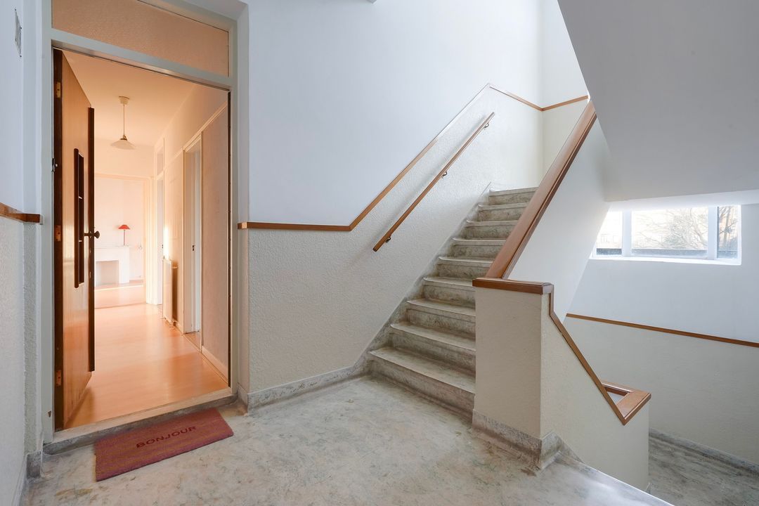 Well-maintained entrance with mailboxes and doorbells with a video intercom system. Access to the first floor is via the staircase or elevator.