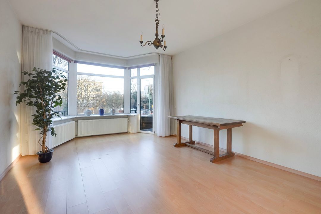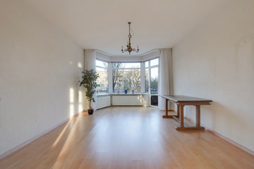 Een ruim en zo te betrekken 5-kamer appartement (ca. 109 m2) op de 1e verdieping gelegen voorzien van originele woonkamer en suite, 3 slaapkamers, 2 zonnige balkons en een berging in de onderbouw.